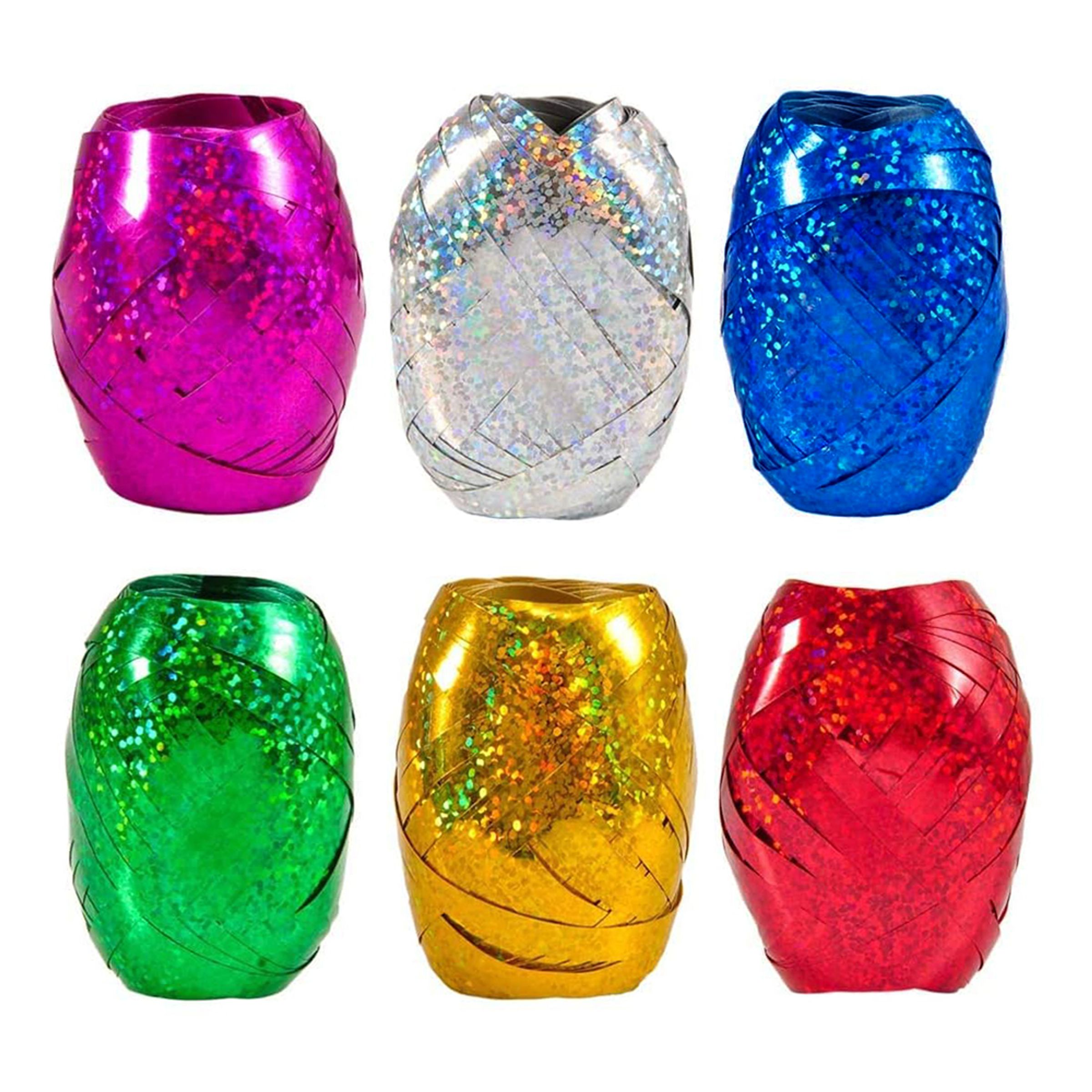 Ballongsnören Färgmix Glitter består av sex stycken glittrande ballongsnören i olika snygga färger. Passar lika bra som presentsnöre som ballongsnöre!