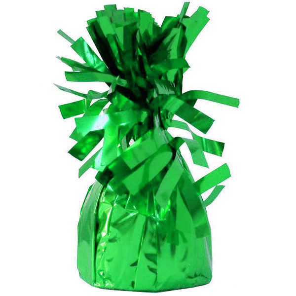 Ballongvikt Grön Folie innefattar en ballongvikt invirad i snygg grön folie med en öggla för lätt fästa ballongerna med ett ballongsnöre.