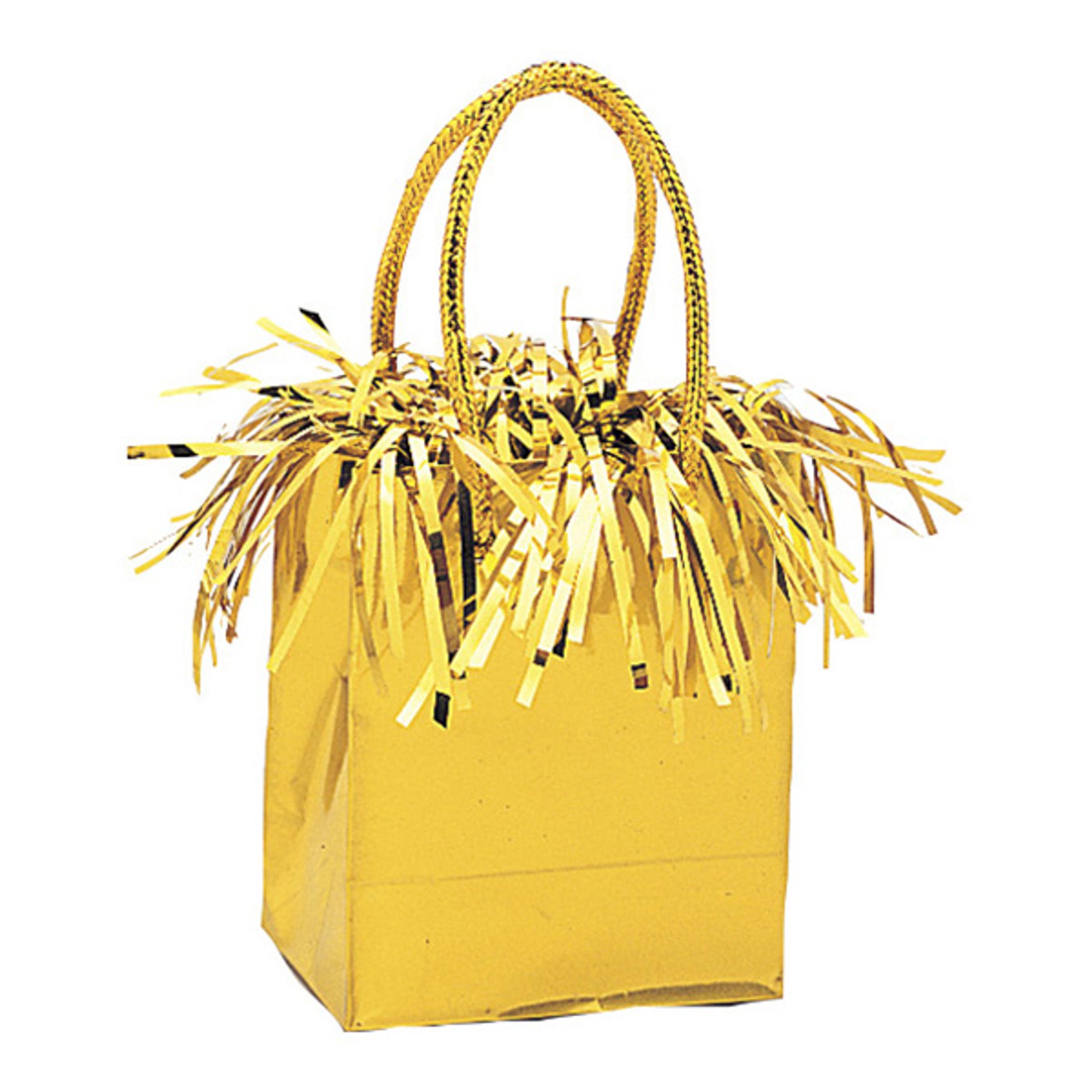 Ballongvikt Guld Metallic kommer i form av en liten påse i läcker guldmetallic med dekorativt folie, och ballongsnöret knyter du enkelt fast i ballongviktens små bärhandtag.