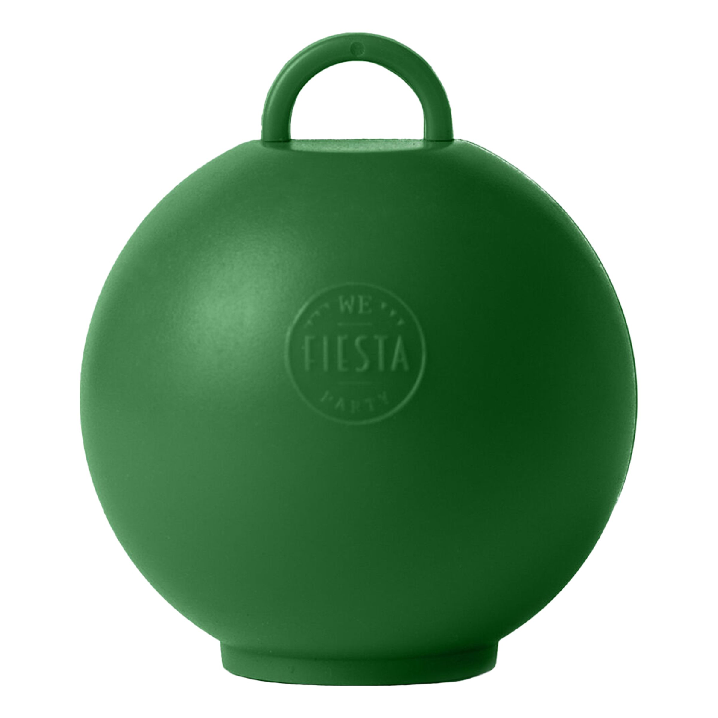 Ballongvikt Kettlebell Grön är en rund tyngd med handtag med ett litet runt tryck på framsidan. Ballongvikten orkar hålla ner cirka fyra vanliga latexballonger på 25-30 cm eller fem stycken vanliga folieballonger på 45 cm. Ballongsnören ingår inte.
