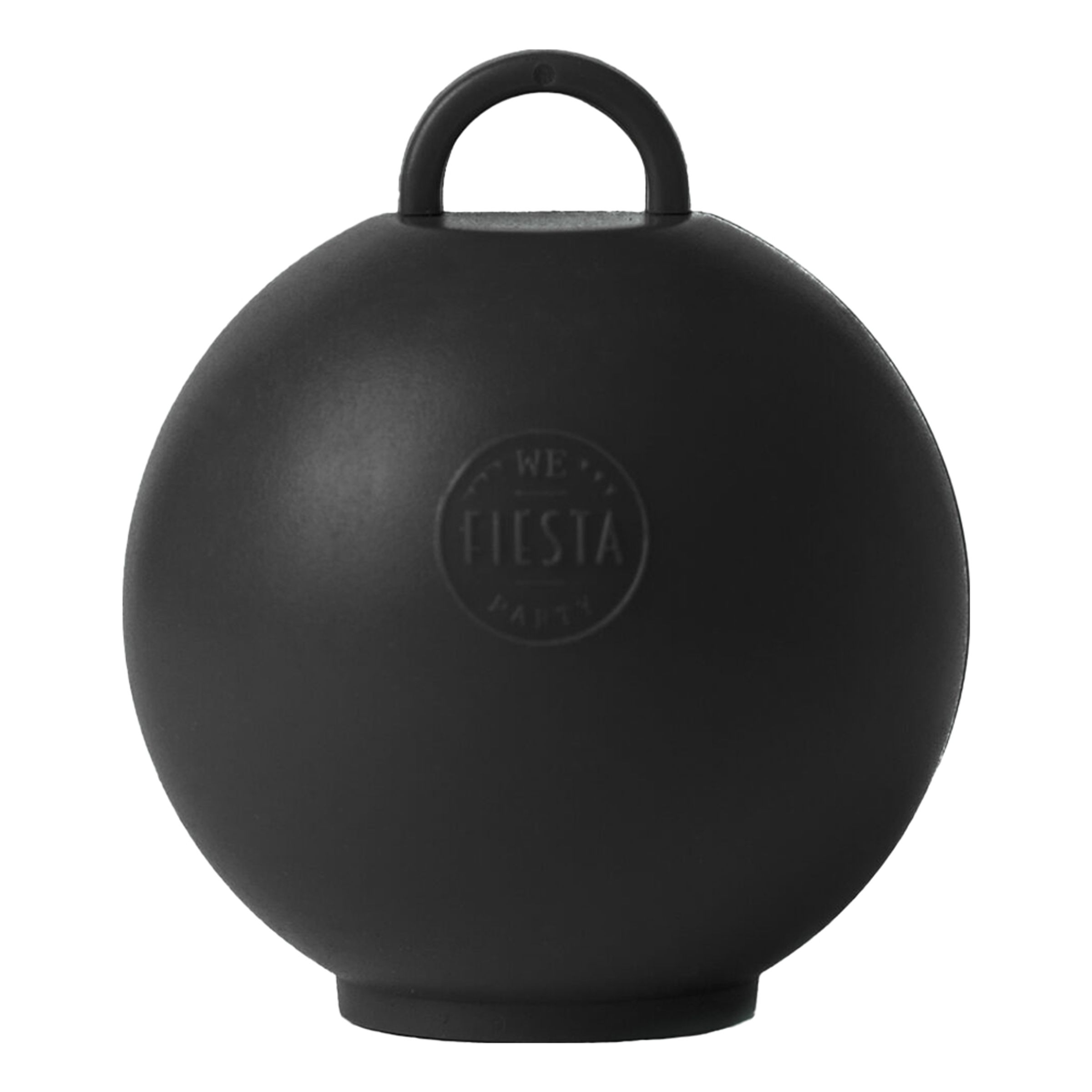 Ballongvikt Kettlebell Svart är en rund tyngd med handtag med ett litet runt tryck på framsidan. Ballongvikten orkar hålla ner cirka fyra vanliga latexballonger på 25-30 cm eller fem stycken vanliga folieballonger på 45 cm. Ballongsnören ingår inte.