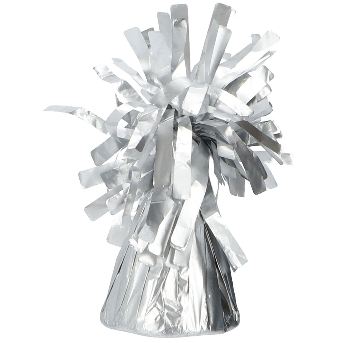 Ballongvikt Silver omfattar en silverfärgad ballongvikt med ögla upptill för att fästa heliumballonger med ballongsnören.