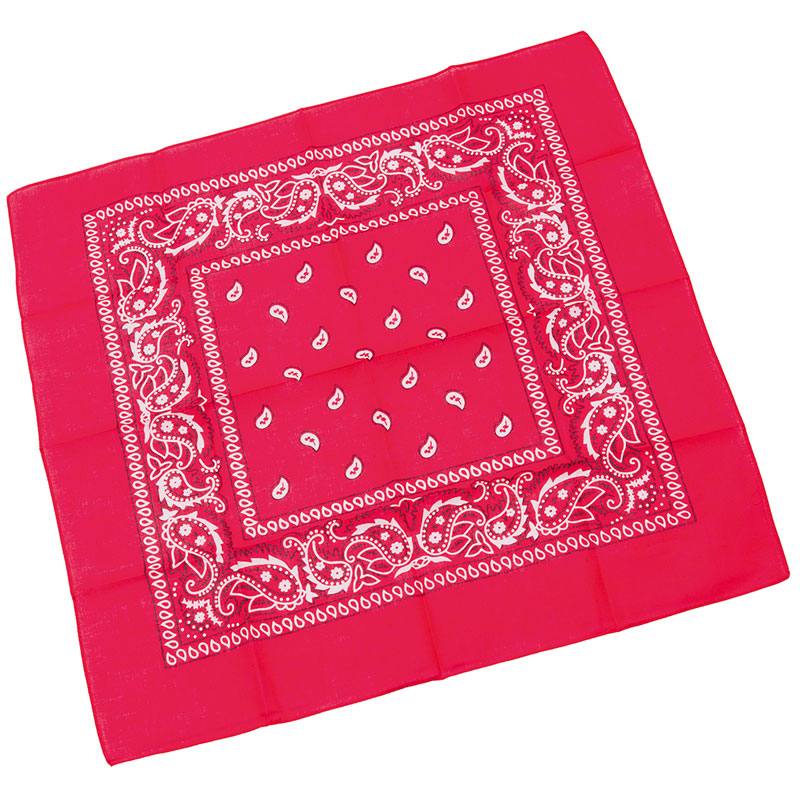 Bandana Röd består av en röd bandana med klassiskt mönster i vitt med svarta detaljer. Tillverkad av 100% polyester.