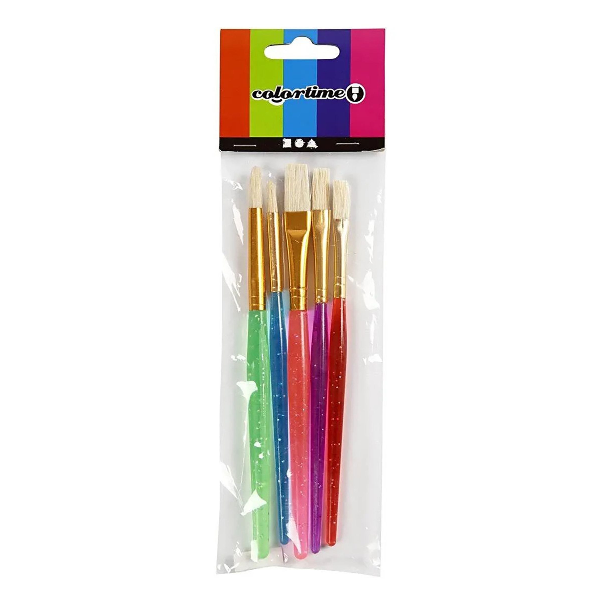 Barnpenslar Mixade Färger inkluderar fem stycken penslar i olika storlekar som kommer med både runa och platta borstar. Borstarna kommer dessutom i lekfulla färger med med korta plasthandtag – perfekt för barn!