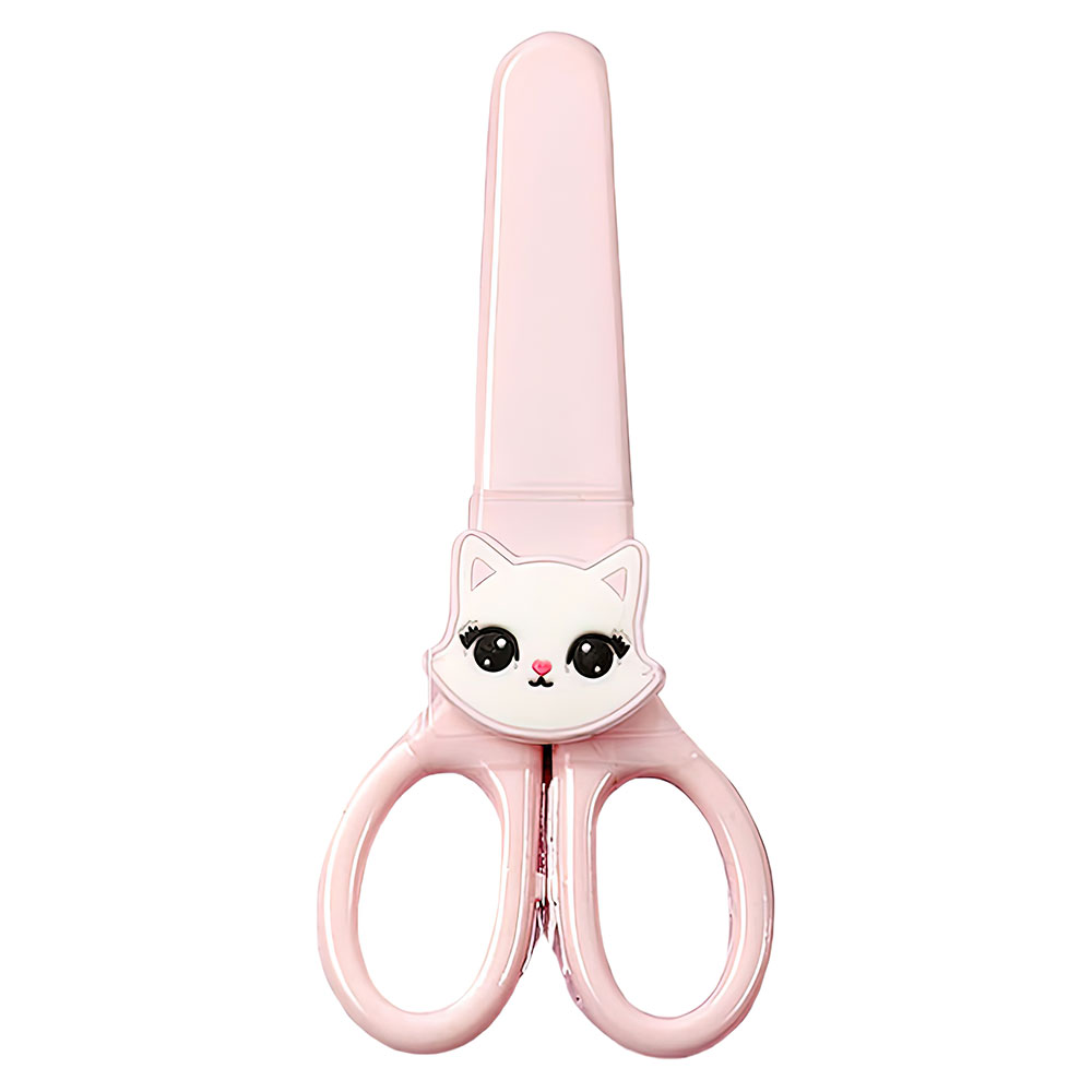 Fin och gullig sax för alla barn som gillar katter. En söt och praktisk barn-sax med fodral och en vit katt, som gör pysslandet och fixandet ännu roligare.