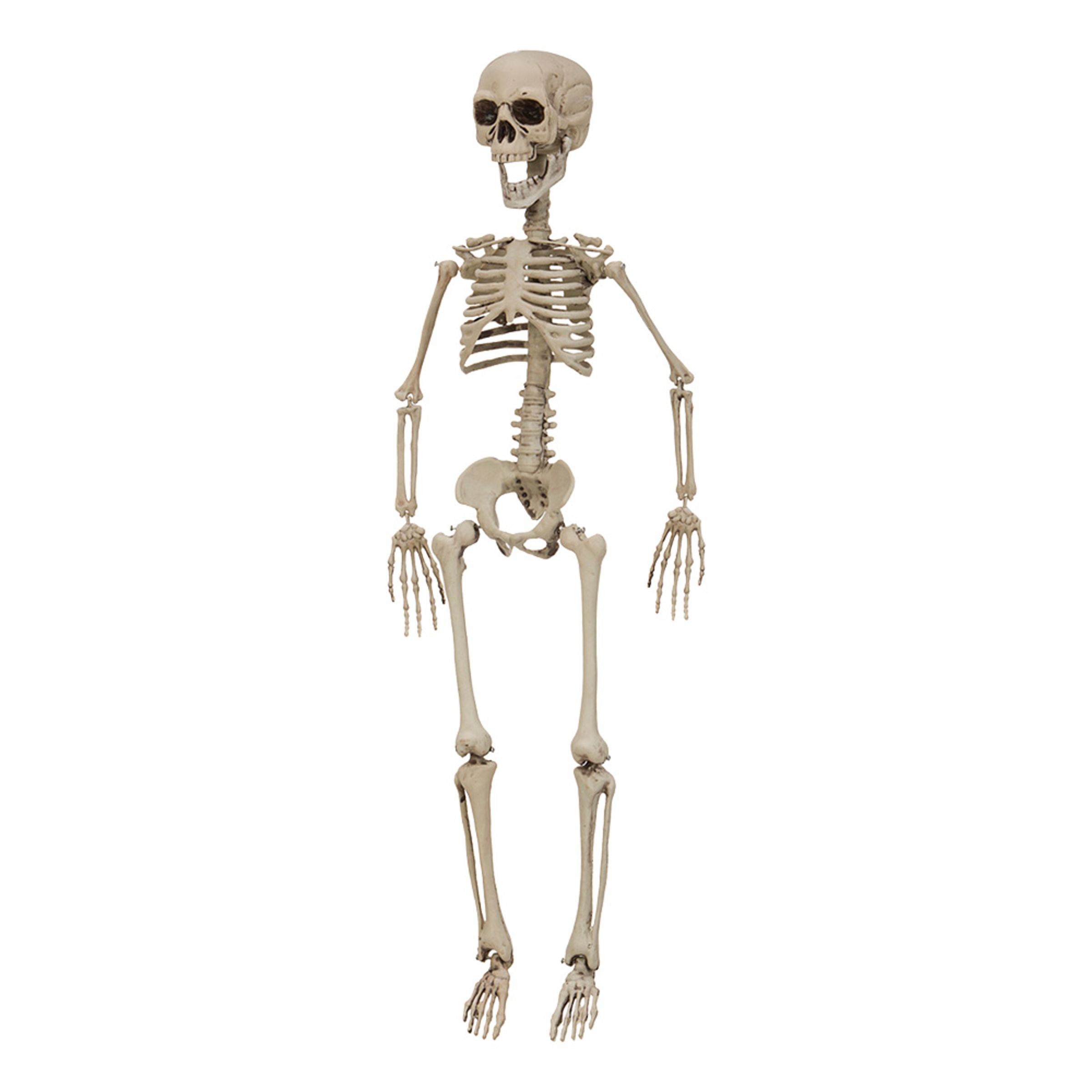 Barn kan vara läskiga små människor och ännu läskigare kan dem bli i skepnaden av ett skelett. Gummiskelett i barnstorlek som mäter 76 cm långt och kommer detaljerat med samtliga av kroppens kotor inklusive huvud med käke. Perfekt för dekoration till Halloween eller andra festtillfällen där döda ting hör till.