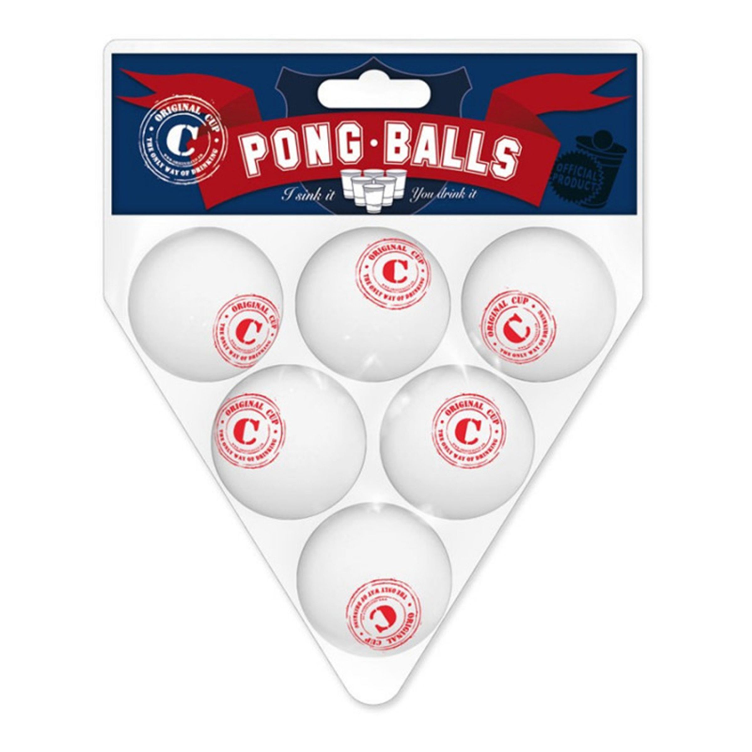 Beer Pong Bollar inkluderar sex stycken vita bollar med rött tryck. Bollarna är lika stora som vanliga pingisbollar och passar perfekt till det klassiska spelet Beer pong som ofta syns i amerikanska collage-filmer.