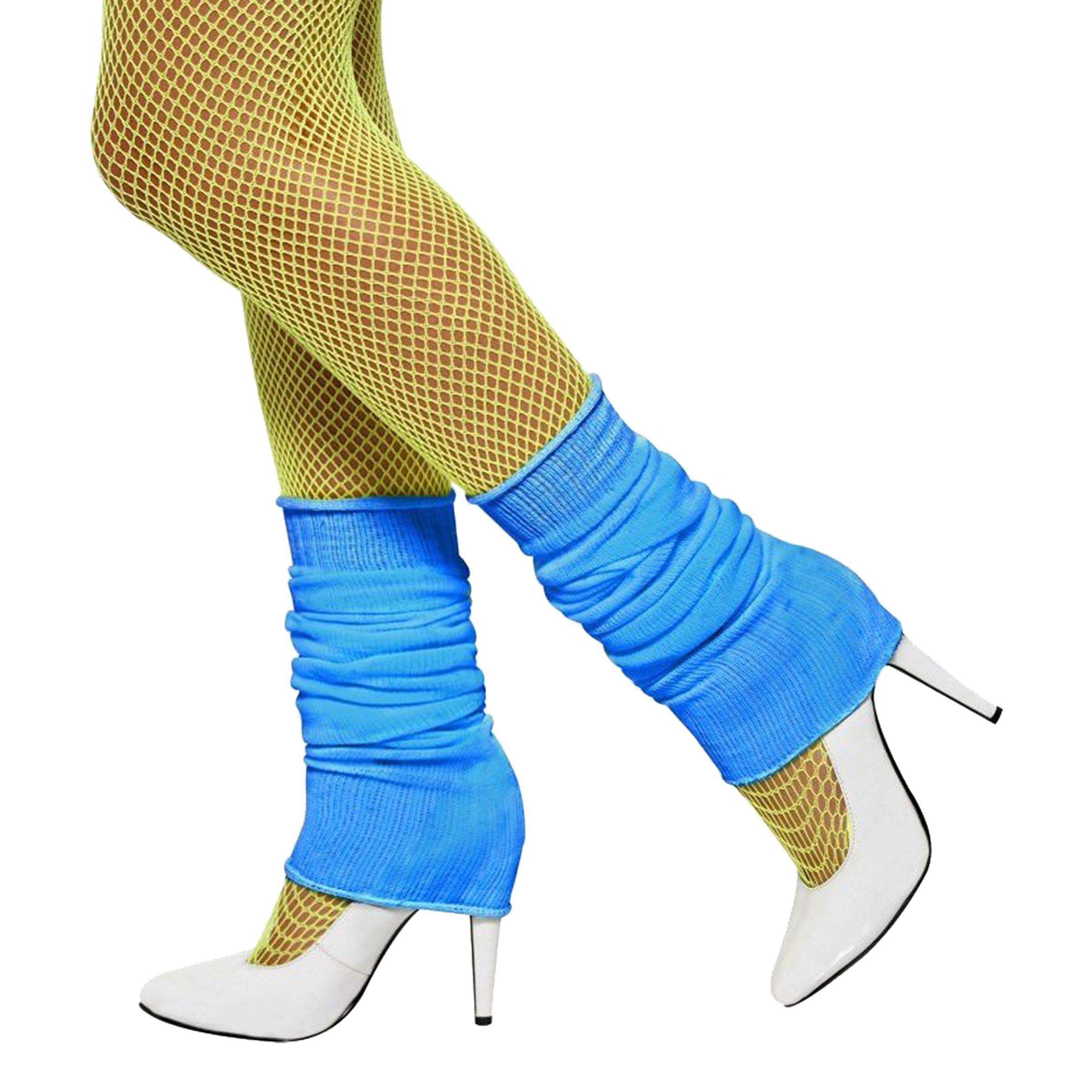 Ett par neonblåa benvärmare, en perfekt accessoar för 80-tals inspirerade maskeradkläder.