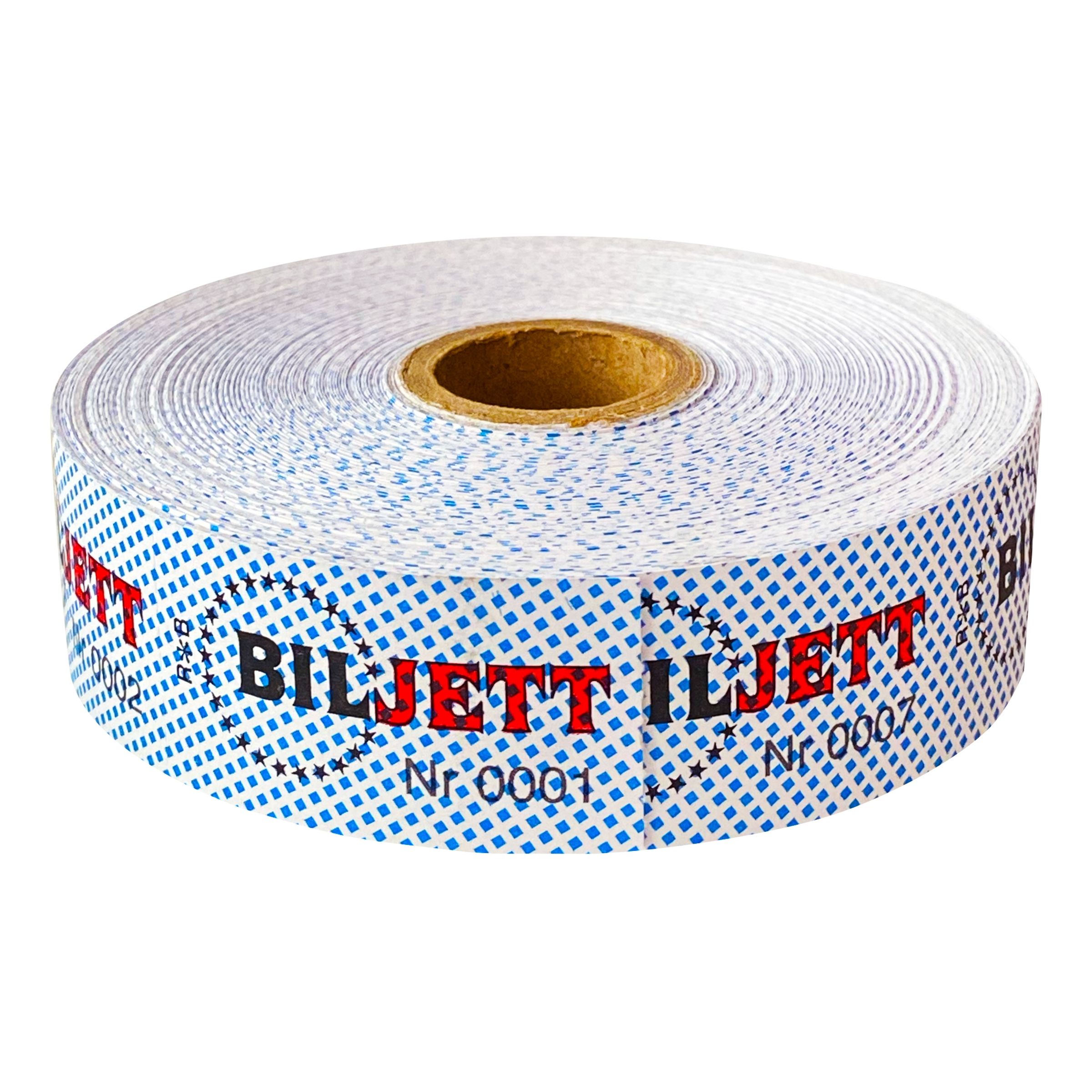 Biljetter Rullade är perforerade entrébiljetter på rulle. Det är 1000 stycken biljetter per rulle. Välj mellan färgerna blå, grön, grå och gul.