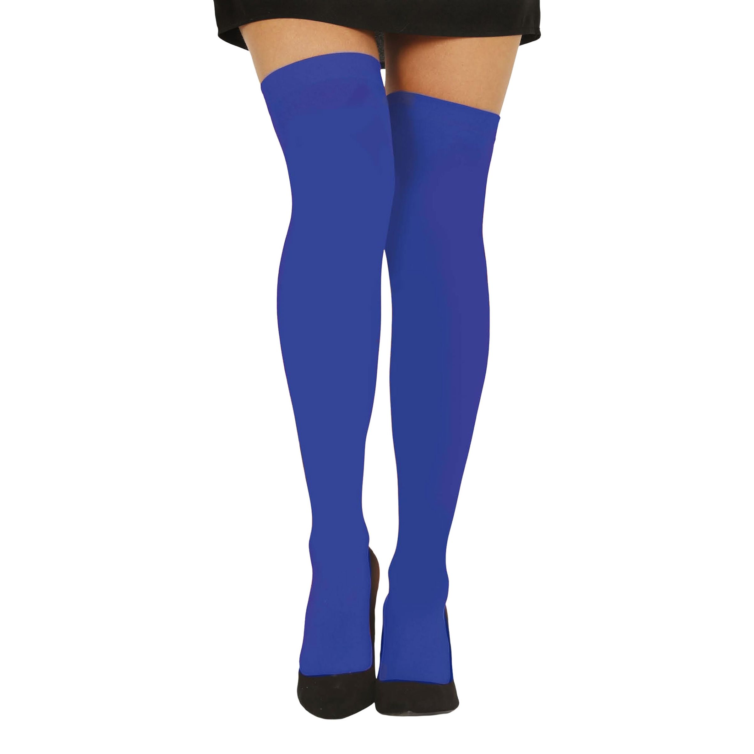 Blå Knästrumpor är ett par höga strumpor av stretchigt material som kommer i en storlek som passar vuxna. Stumporna är tillverkad i polyester och blir ett klockrent tillskott till din maskeradoutfit, särskilt i kombination med en kjol eller klänning.