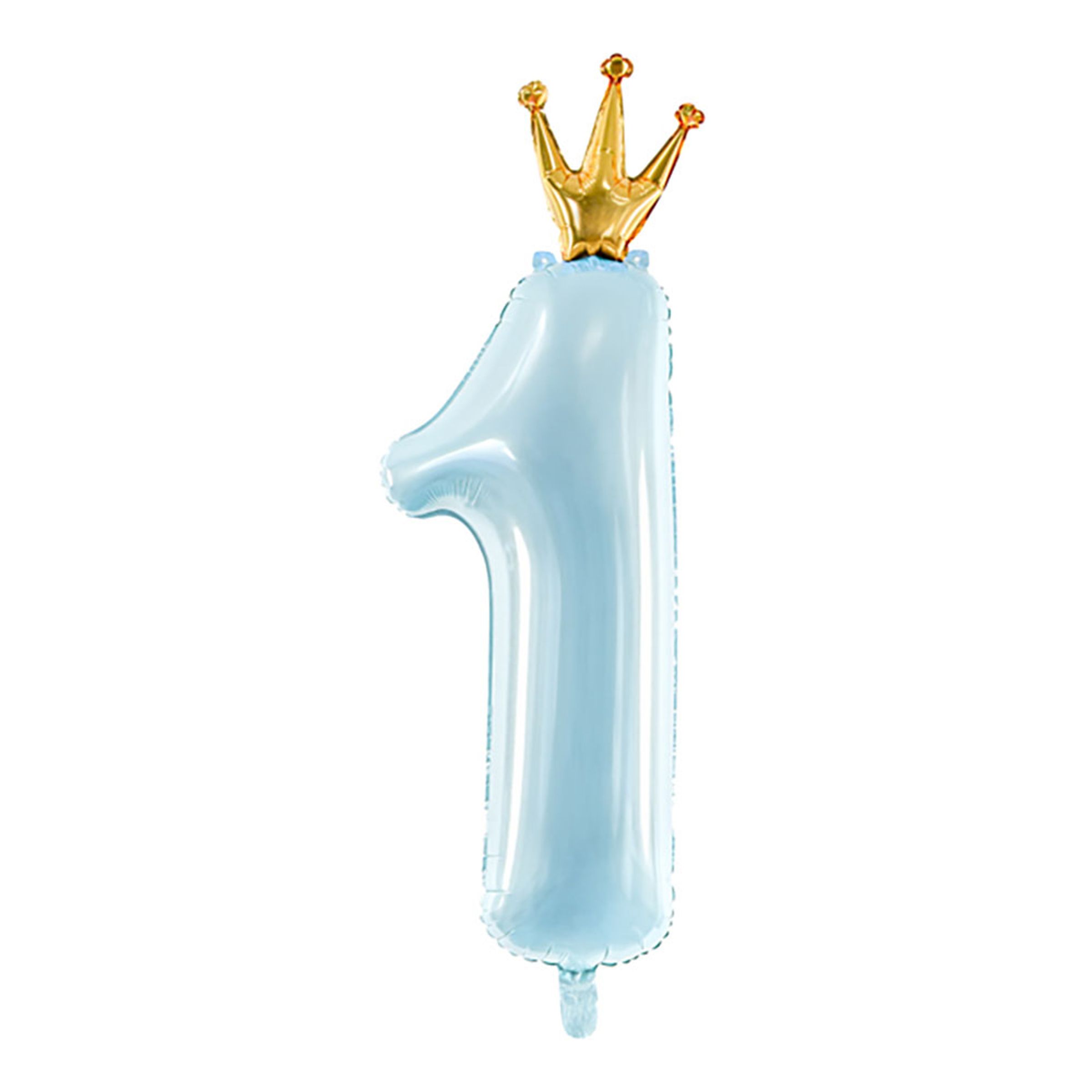 Blå Sifferballong 1 med Krona är den perfekta ballongen till 1-års kalaset! Komplettera med vita och ljusblåa latexballonger för att skapa en fin dekoration.