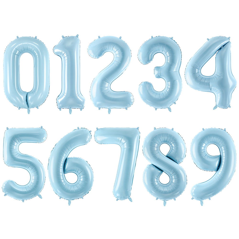 Vill du pynta barnets födelsedag med ballonger i form av siffror så kan du enkelt göra det med hjälp av denna fina sifferballong! Snygg folie-ballong i form av valfri siffra i en fin pastellblå nyans som gör sig riktigt bra till barnkalas. Blås upp ballongsiffran med luft eller helium och pynta med den snyggt tillsammans med dina övriga dekorationer så kan kalaset börja!