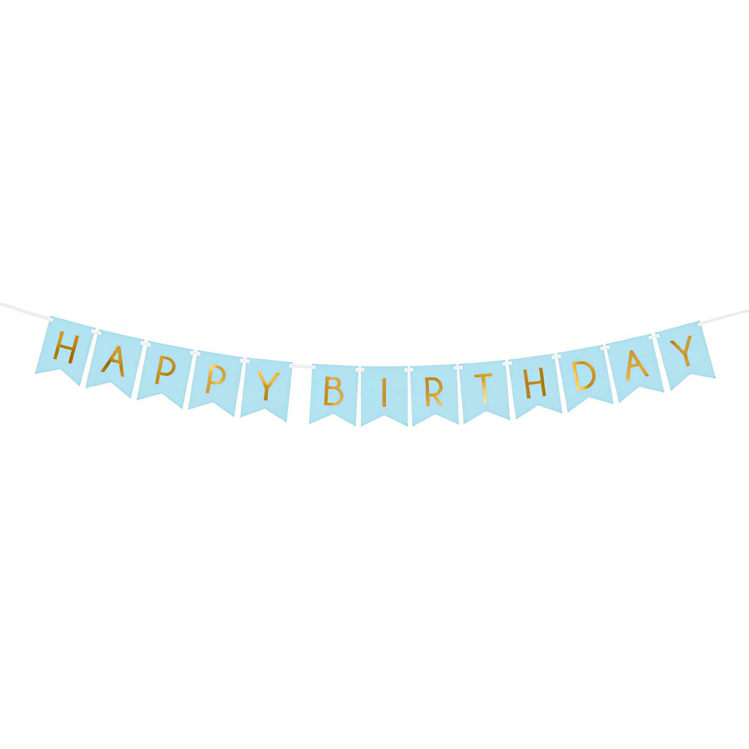 Blå Vimpelgirlang Happy Birthday är den perfekta dekorationen till födelsedagsfesten eller barnkalaset! Pimpa upp hemmet och låt festen börja.