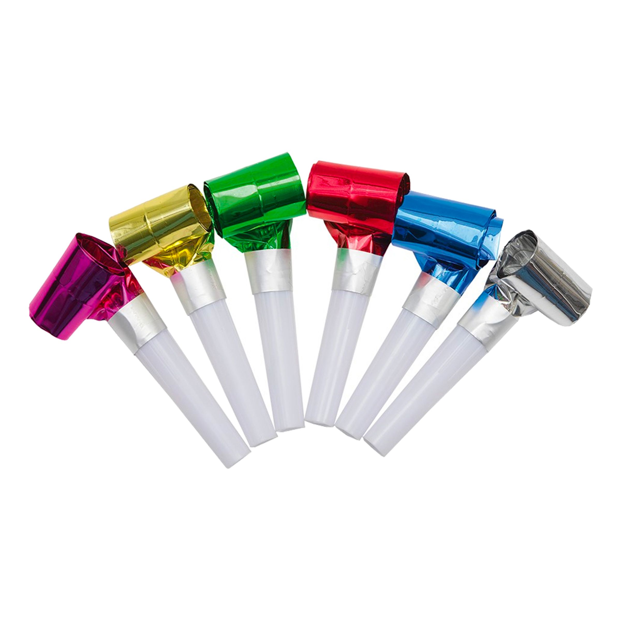 Blåsormar Färgmix Metallic består av sex stycken partytutor som vecklar ut sig och tutar när du blåser i dom. Blåsormarna kommer i olika läckra metallicfärger med vita munstycken av plast.
