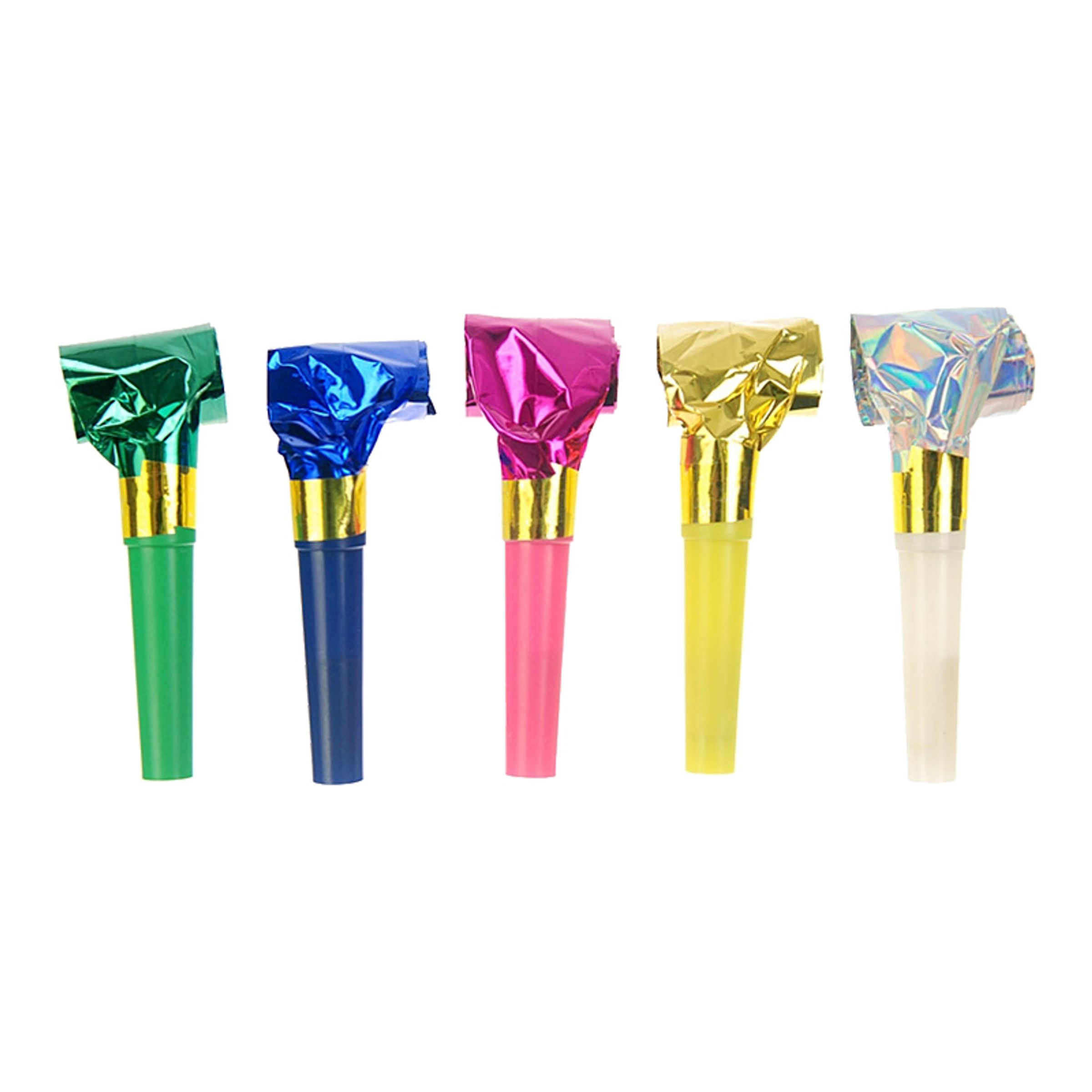 Med dessa klassiska visseltutor blir inget party tråkigt. Ett givet inslag i alla bra nyårsfester! Du köper med fördel upp dig på ett större antal som sedan kan spridas ut över hemmet eller festlokalen, redo för gästerna att använda! Våra Holographic Wistles kommer i färgerna grönt, blått, rosa, guld och silver. De ger ifrån sig ett härligt tjut när man blåser i dem. Låt nedräkningen till tolvslaget ackompanjeras utav våra härliga blåsormar!