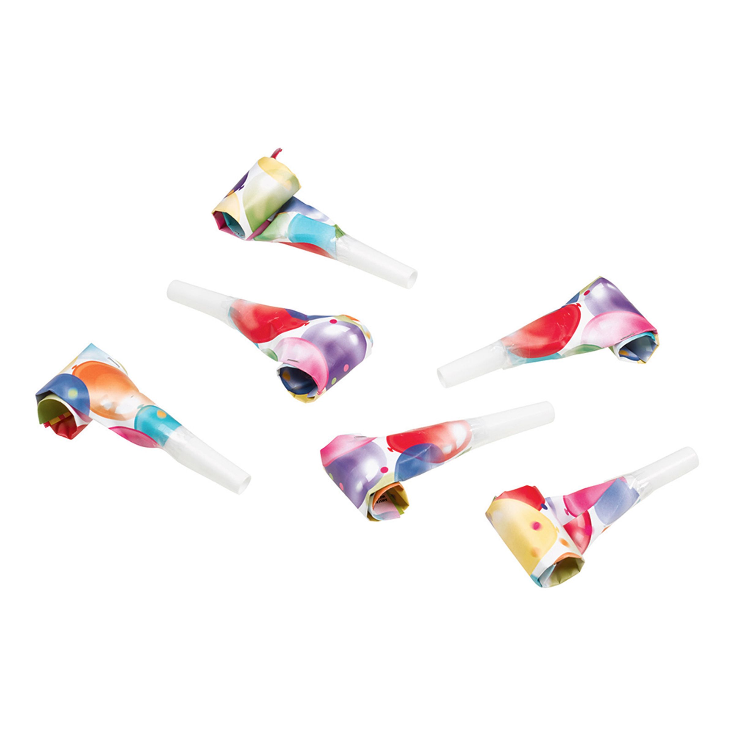 När födelsedagssången och hipp hipp hurra:andet lider mot sitt slut finns det bara en sak att göra för att höja stämningen ytterligare: blåsa och tuta för glatta livet i en färgglad blåsorm! En traditionell och uppskattad aktivitet på kalas! Den här varianten kommer i 8-pack och pryds av festliga ballonger!