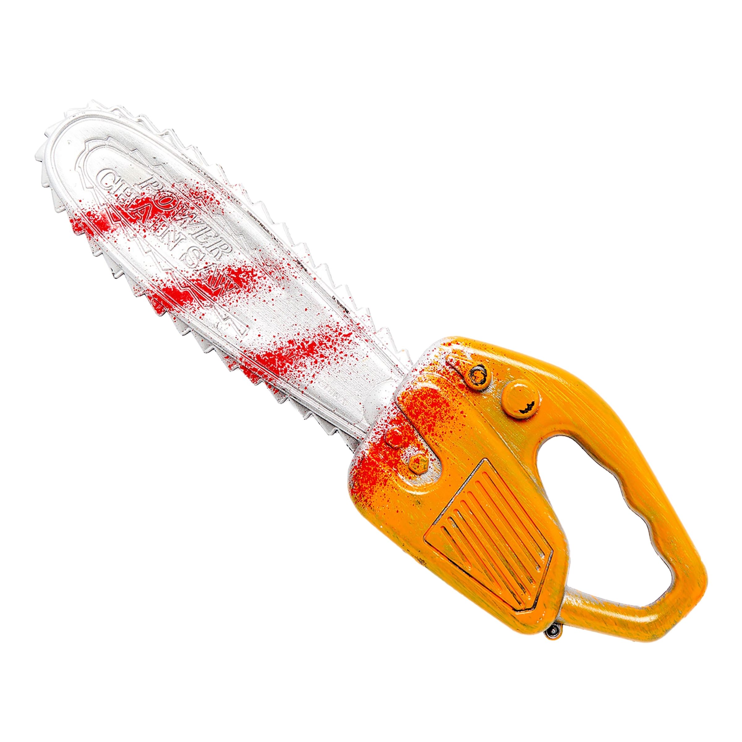Blodig Motorsåg av Plast är en liten motorsåg av plast som kommer med ett kusligt blodstänk på. Den perfekta accessoaren till maskeraden när du ska klä ut dig till något läskigt!