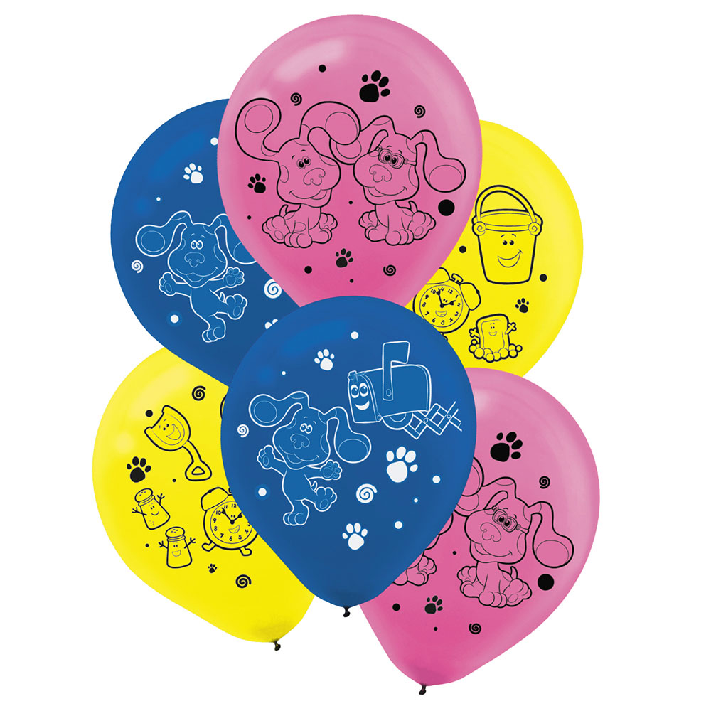 Blue's Clues Ballonger omfattar sex stycken latexballonger i färgerna rosa, gult och blått med Blue's Clues motiv.