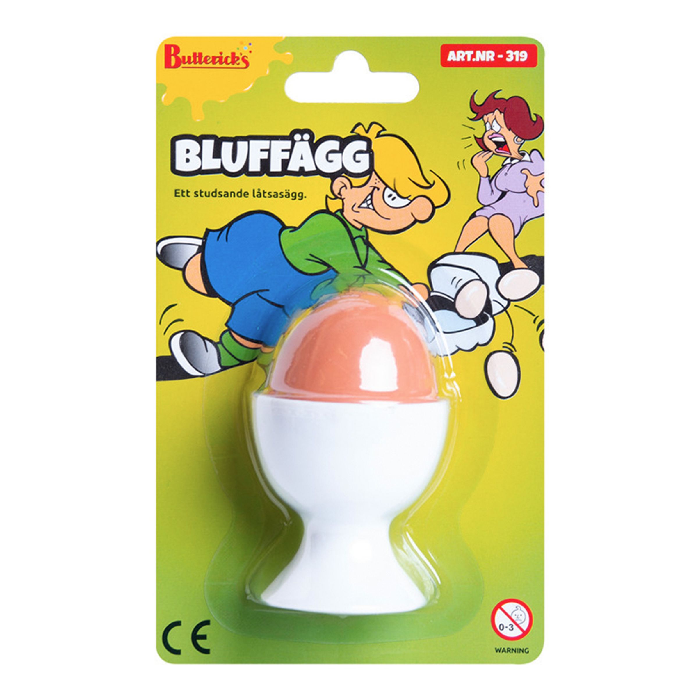 Bluffägget är en rolig skämtprodukt som föreställer ett ägg – som aldrig går sönder, oavsett vad!