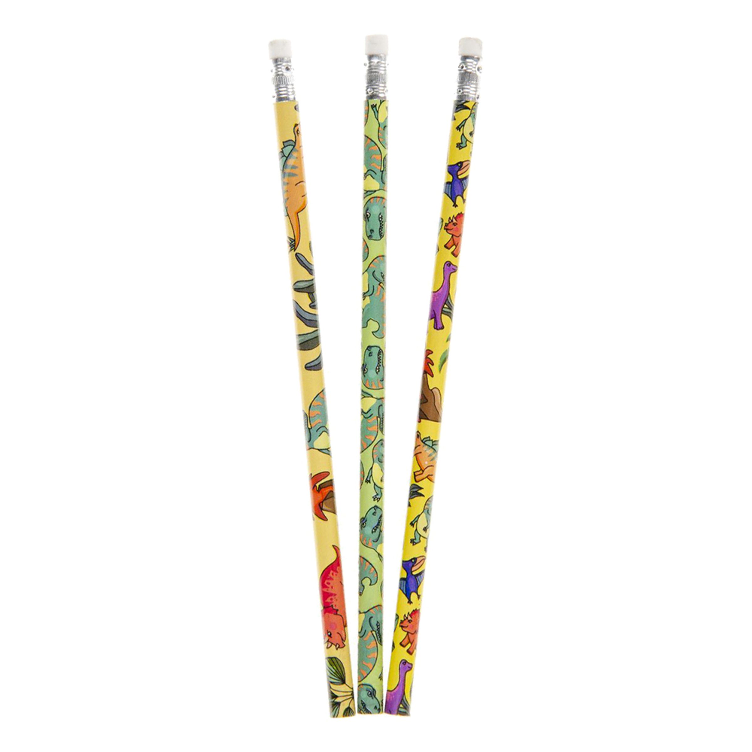 Blyertspennor Dinosaurie innehåller tolv stycken pennor med suddgummi som samtliga kommer med motiv föreställande förhistoriska dinosaurier. Notera att pennorna måste vässas innan användning.