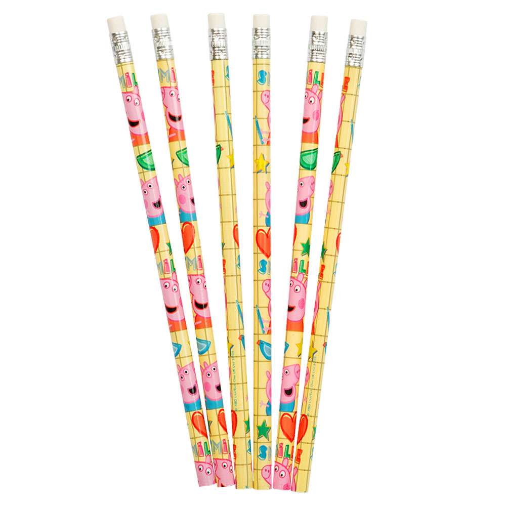 Blyertspennor Greta Gris omfattar 6 stycken blyertspennor i ljusgult med Greta Gris motiv och sudd på toppen. Pennorna är ca 19 cm långa och tillverkade i trä.