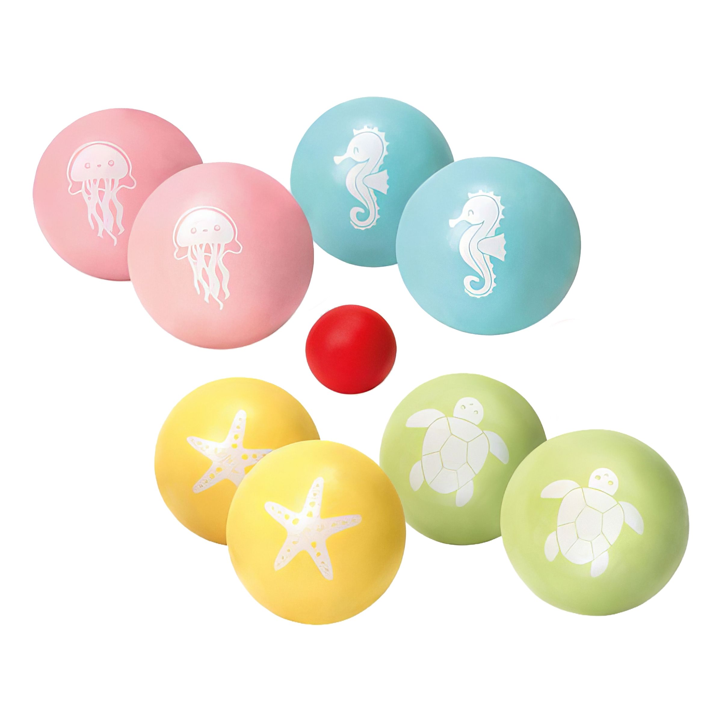 Bocciaspel av Trä innehåller 8 klot i färgerna blått, gult, grönt och rosa samt 1 liten röd kula. Det följer även med en blå förvaringspåse. Perfekt att ta med till stranden!