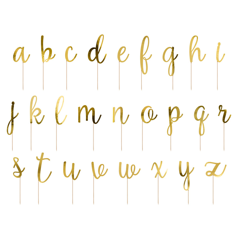 Snygga bokstäver i skimrande guld som definitivt får din tårta att se super proffsig ut! Dekorera din tårta med exempelvis en härlig grattis hälsning, ett speciellt datum eller kanske födelsedagsbarnets namn med hjälp av dessa festliga tårtdekorationer i form av snygga bokstäver. Lätthanterliga, snygga och enkla tårtdekorationer som är ett måste för alla som önskar sig en snygg text till tårtan.