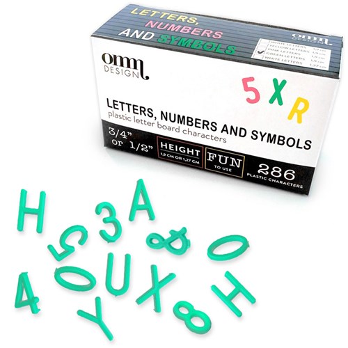 Varje förpackning med bokstäver inkluderar 286 bokstäver, siffror och symboler i vit, grön, gul eller rosa plast. De vita tecknen finns i två olika storlekar. Använd de medföljande punkterna för att skriva å, ä, ö!