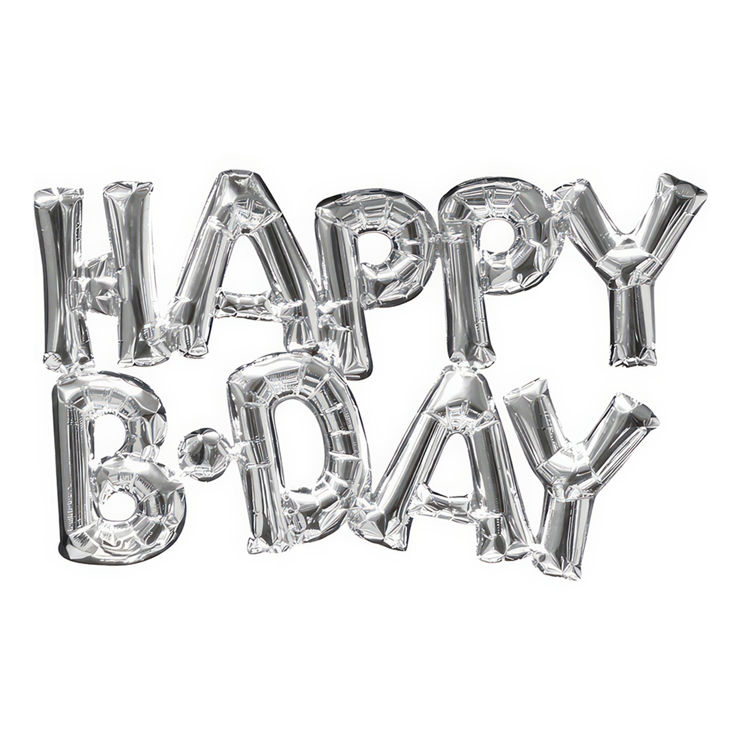 Ballongen är i silver och de föreställer orden ”Happy B-Day”. Oavsett vilket tema du vill ha när du firar din födelsedag, vilka färger du vill använda dig av när du dekorerar, så passar denna silvriga bokstavsballong utmärkt.