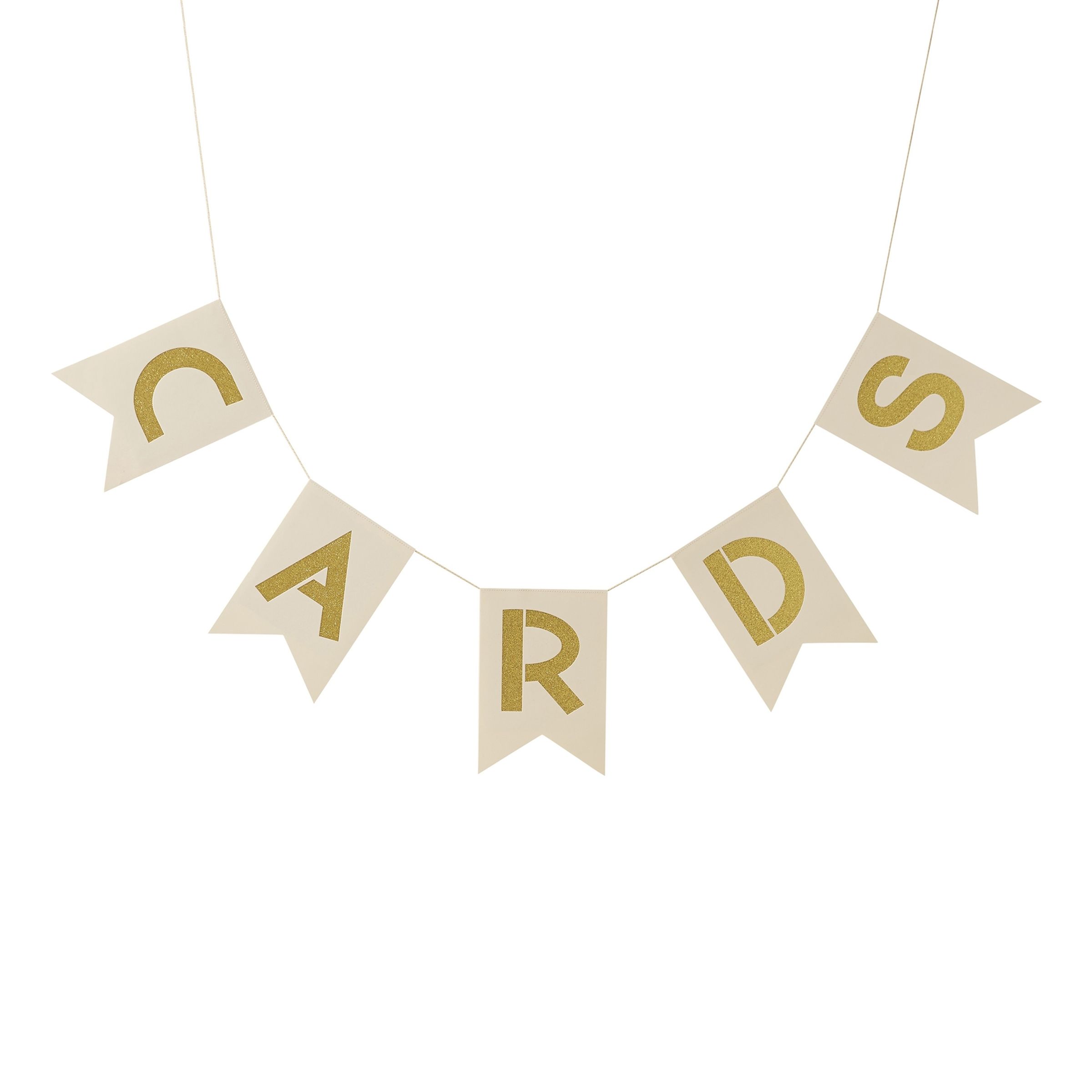 När bröllopet är igång och gratulationskorten och presenterna rullar in vill man ha koll på allt för att undvika mysteriösa försvinnanden. Släng upp denna fantastiskt fina girlang med texten "Cards" över ett bord så gästerna vet var presenterna ska placeras och du slipper bröllopskaoset!