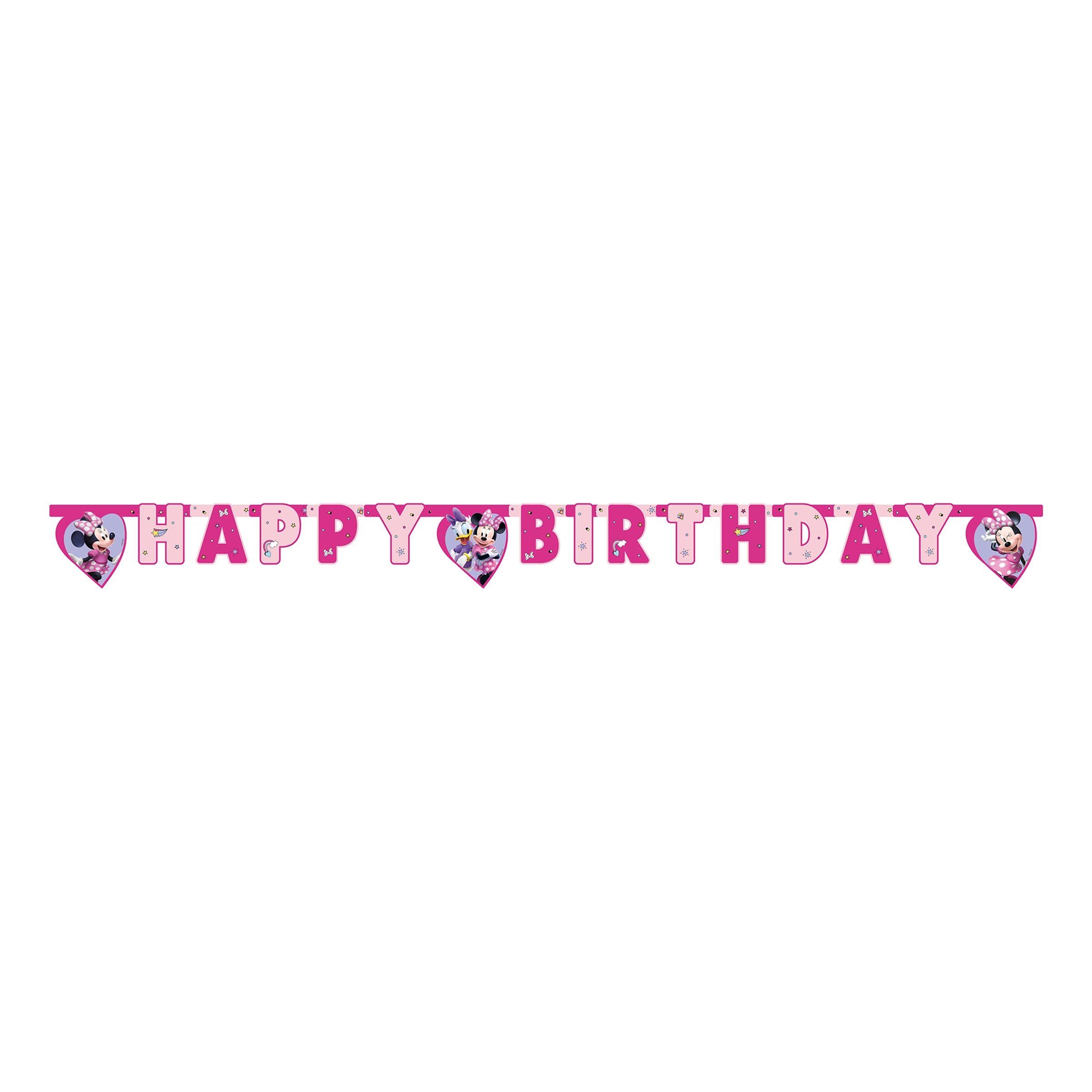Bokstavsgirlang Happy Birthday Mimmi Pigg är en rosa girlang med bokstäver som bildar orden "Happy birthday". Före, mellan och efter orden hänger motiv av Mimmi Pigg och Kalle Anka. Du hänger enkelt upp girlangen mellan två krokar eller med hjälp av lite tejp.