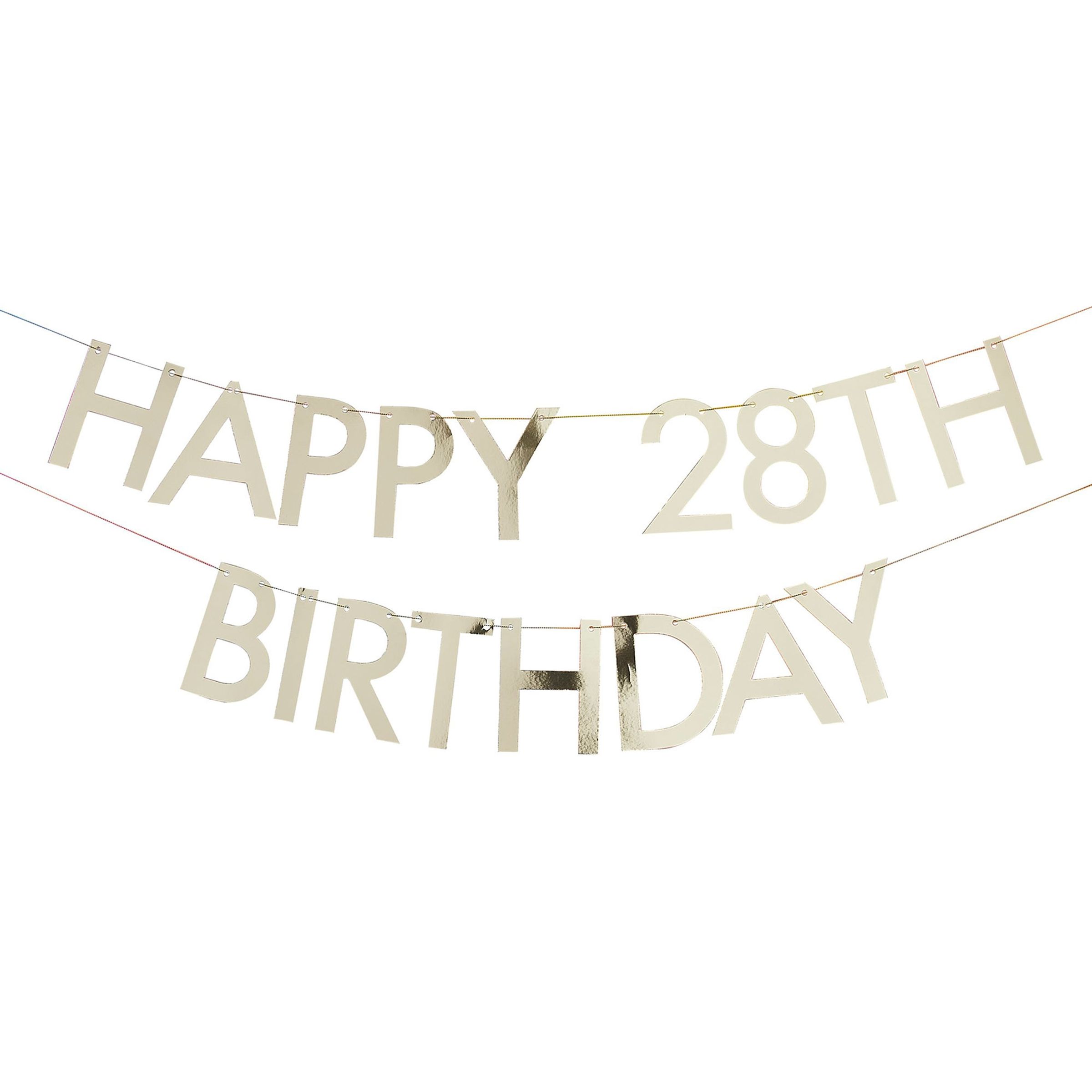 Bokstavsgirlang med Siffror Guld Metallic innehåller siffrorna 0 till 9 gånger 2 i guldfärgat papper. Medföljer gör även orden "Happy" och "Birthday" (150 x 11 cm).