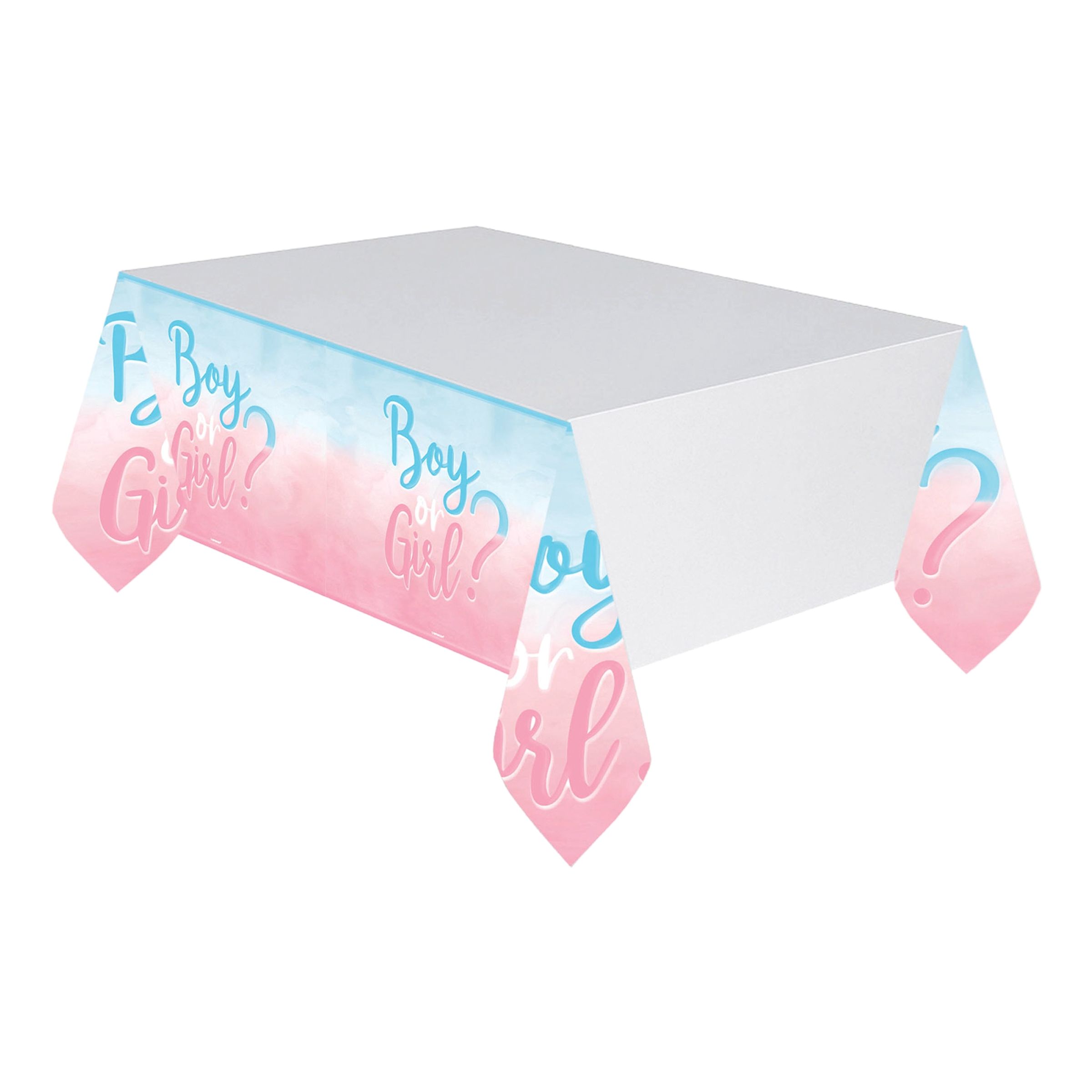 Bordsduk Boy or Girl Reveal är i rosa och blå nyanser och kommer tryckt med texten "Boy or Girl?". Passar ypperligt att slänga över bordet när det är dags för Gender Reveal eller på en baby shower när ni ännu inte vet könet!