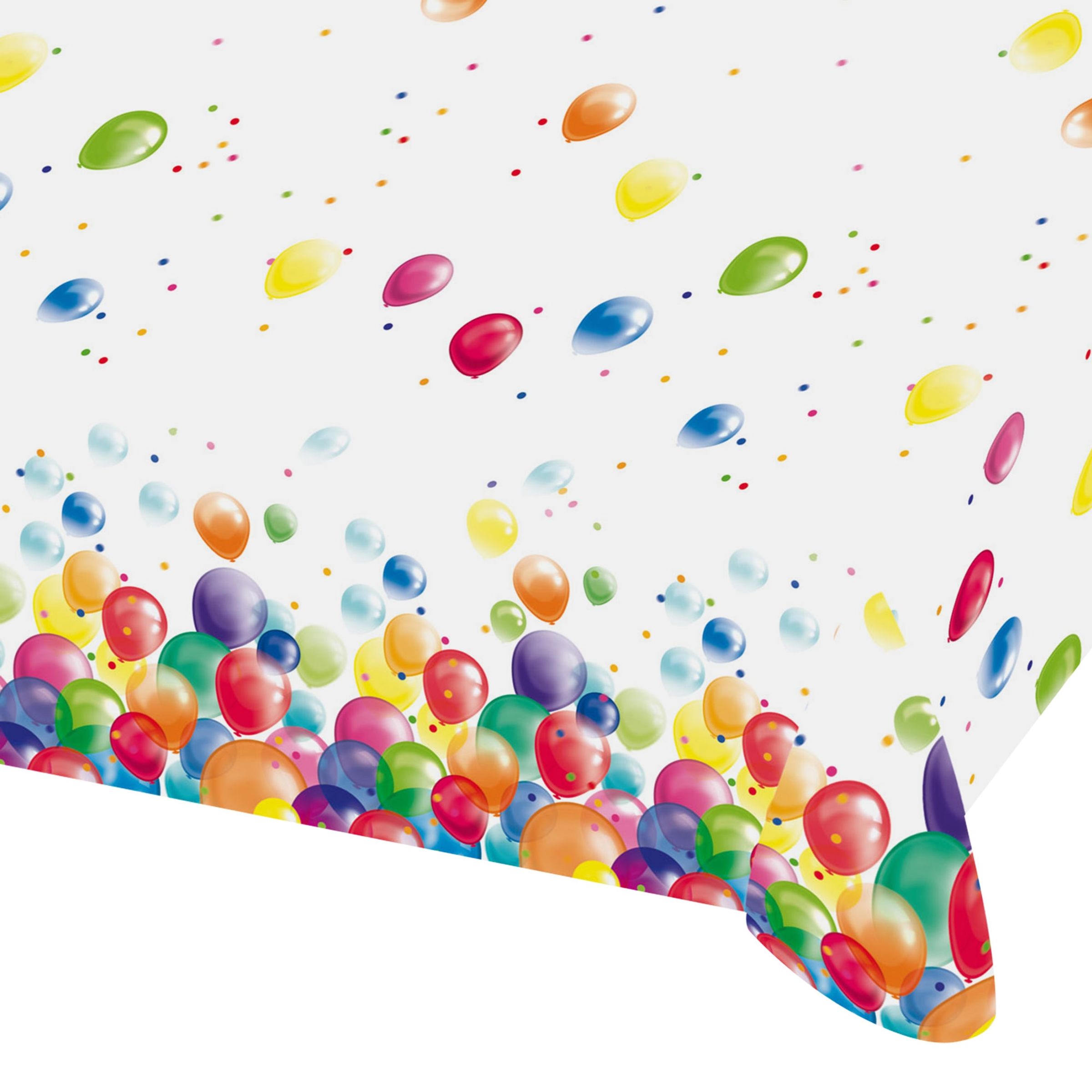 Det är svårt att tänka sig ett kalas utan ballonger. Ballonger är en fantastisk kalasdekoration och nu kan du faktiskt också duka med ballonger. Den här färgglada duken är dekorerad med massor av ballonger. Duken blir en härlig färgklick i rummet och passar lika på bra på ett födelsedagskalas som på en studentuppvaktning eller en sommarfest i trädgården.