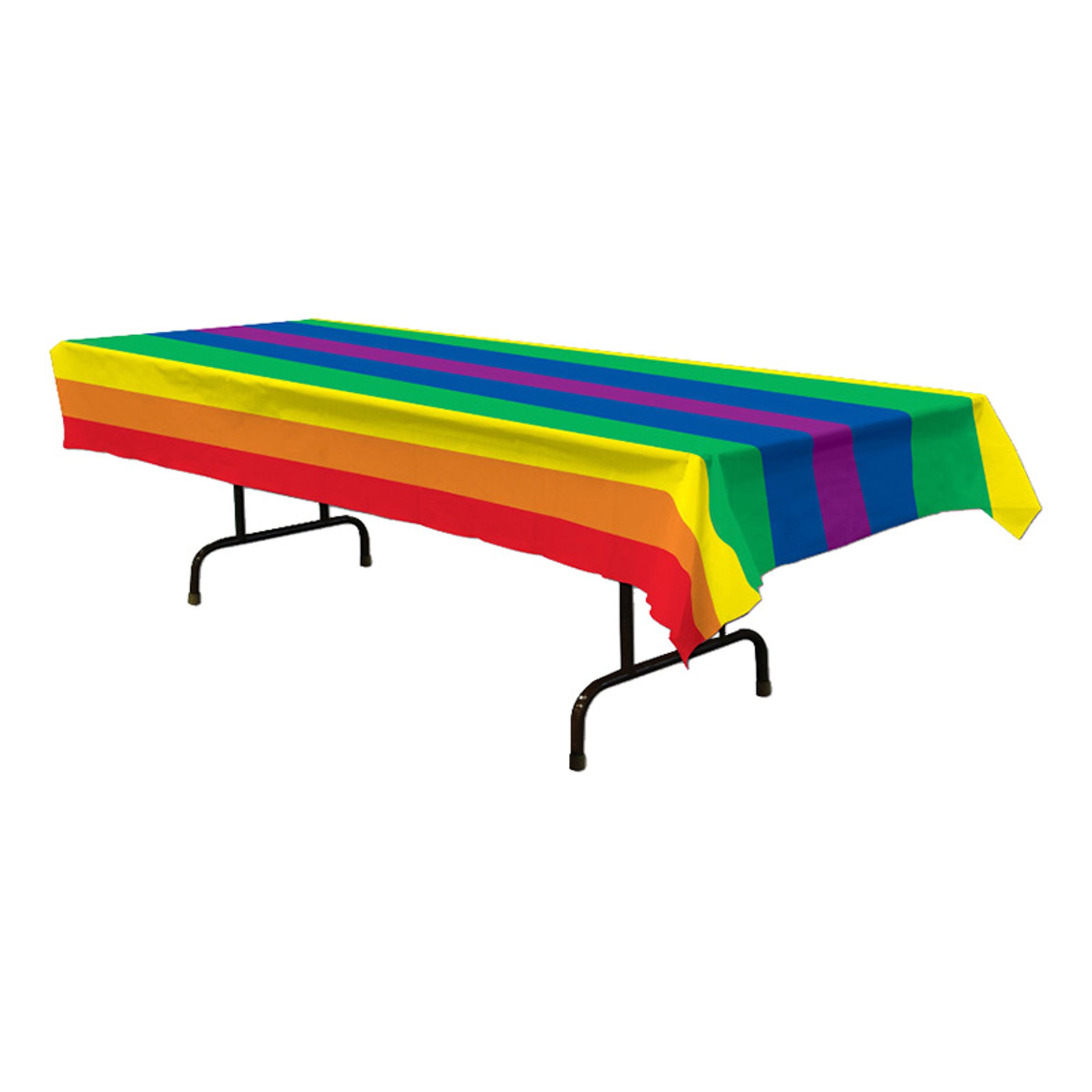 Bordsduk Regnbågsfärgad är en engångsduk i plast med printat motiv av en gigantisk regnbåge. Tänk så vackert att ha en regnbåga att servera mat eller fika på till pridefestivalen, barnkalaset eller varför inte bröllopet?