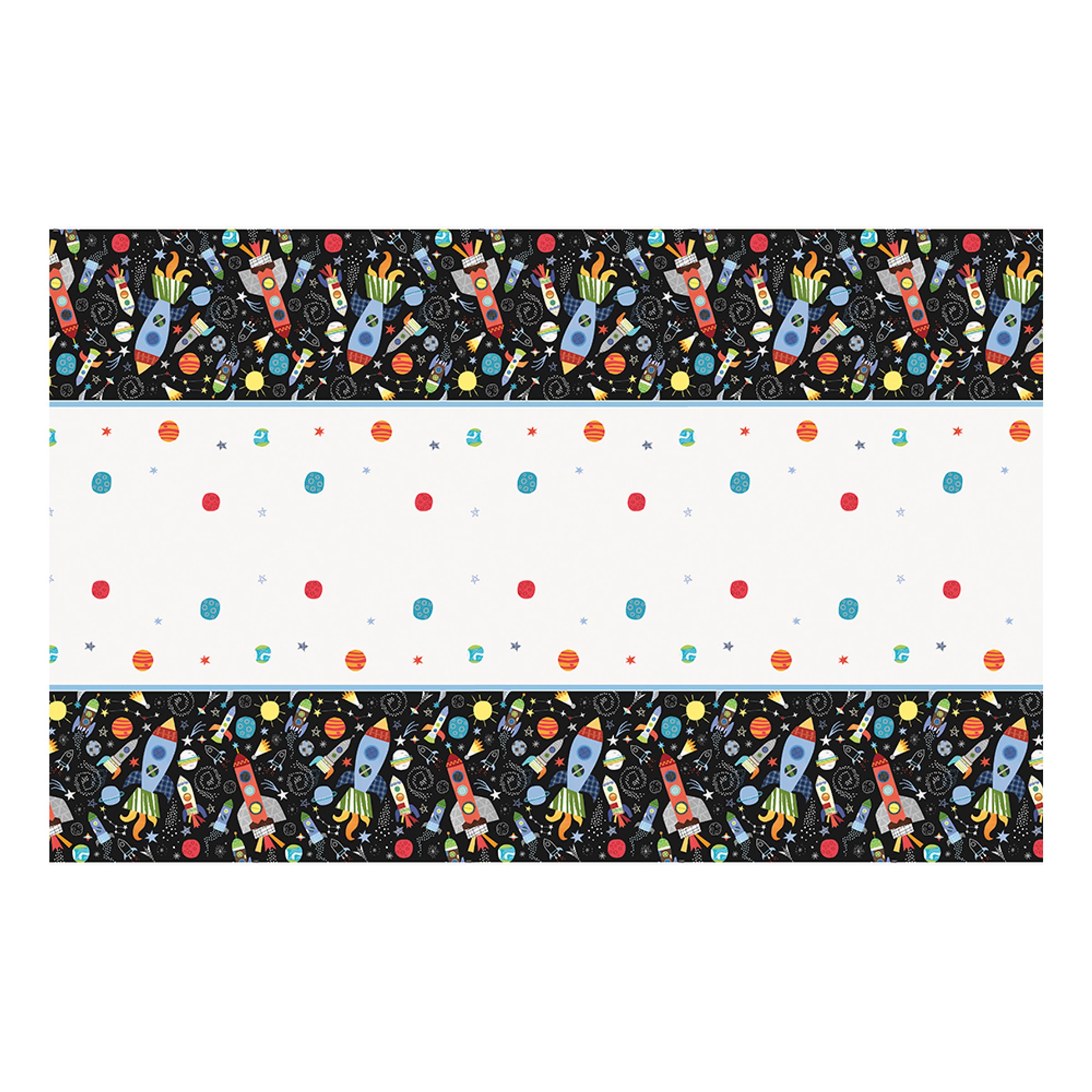 Bordsduk Rymdraket är producerad i plast och mäter 120 x 180 centimeter. Den passar perfekt på maskerad och födelsedagsfest.