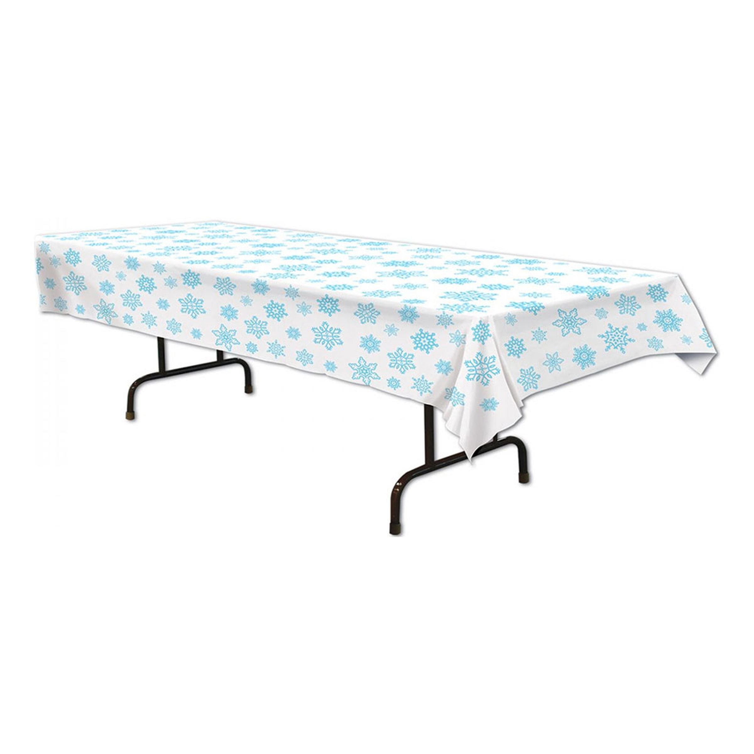 Bordsduk Snöflingor Blå är en bordsduk av plastmaterial som är lätt att torka av och tvätta. Bordsduken är vit med motiv av ljusblå snöflingor.