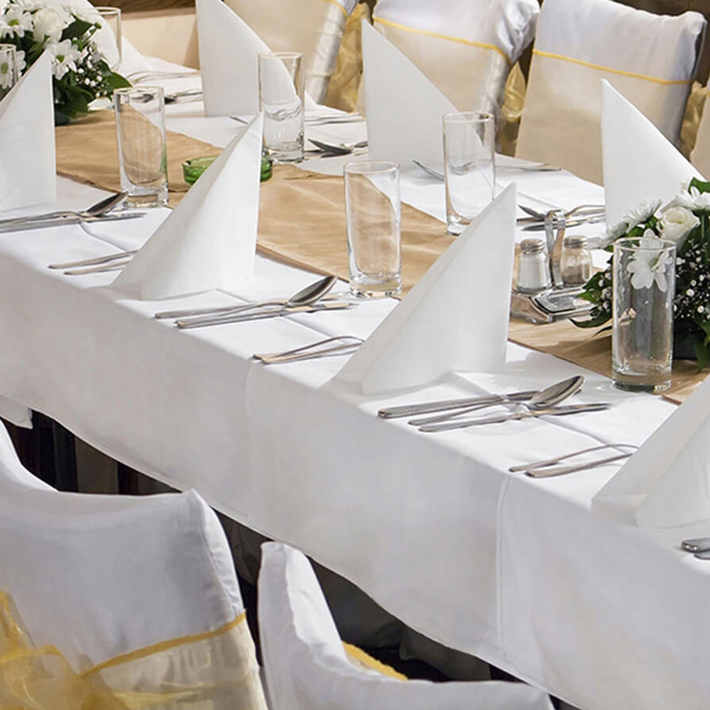 Bordsduk Vit 180×300 cm omfattar en stor, vit bordsduk av fläckresistent polyester. Duken är ca 180 cm bred samt 3 meter lång.