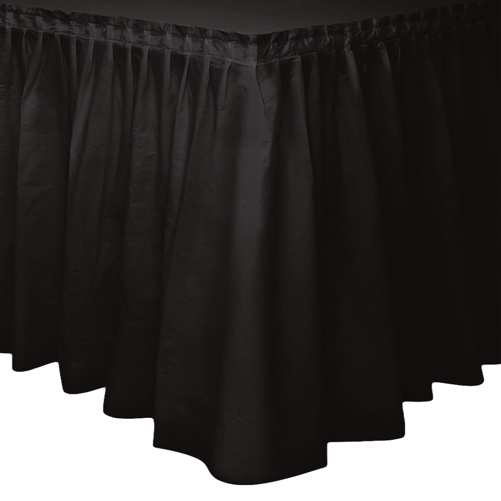 Gör iordning ett riktigt festligt bord med den här snygga bordskjolen i svart! Få till det där lilla extra till middagsbordet, buffébordet eller kanske presentbordet på bara några minuter med hjälp av denna läckra bordskjol runt bordets kanter. En såväl snygg och praktisk bordskjol i plast som passar till flera olika festdukningar i svart som exempelvis nyårsdukningar och Halloween dukningar.