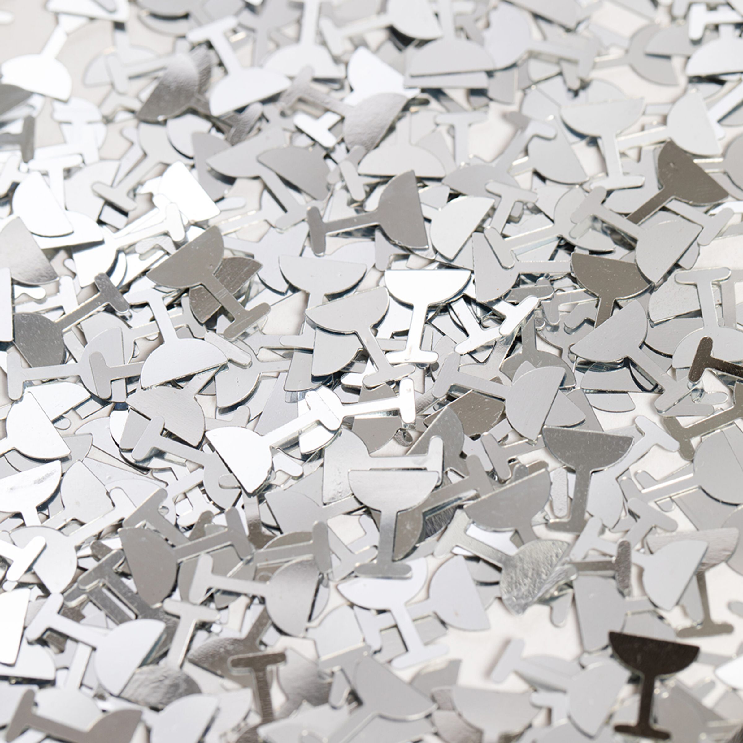 Bordskonfetti Champagneglas Silver Metallic är en superfin konfetti i form av små silverfärgade bubbelglas. Konfettin är i skimrande metallic som gör den extra tjusig. Passar lika bra till nyårsfesten som födelsedagsfesten och andra kalas!