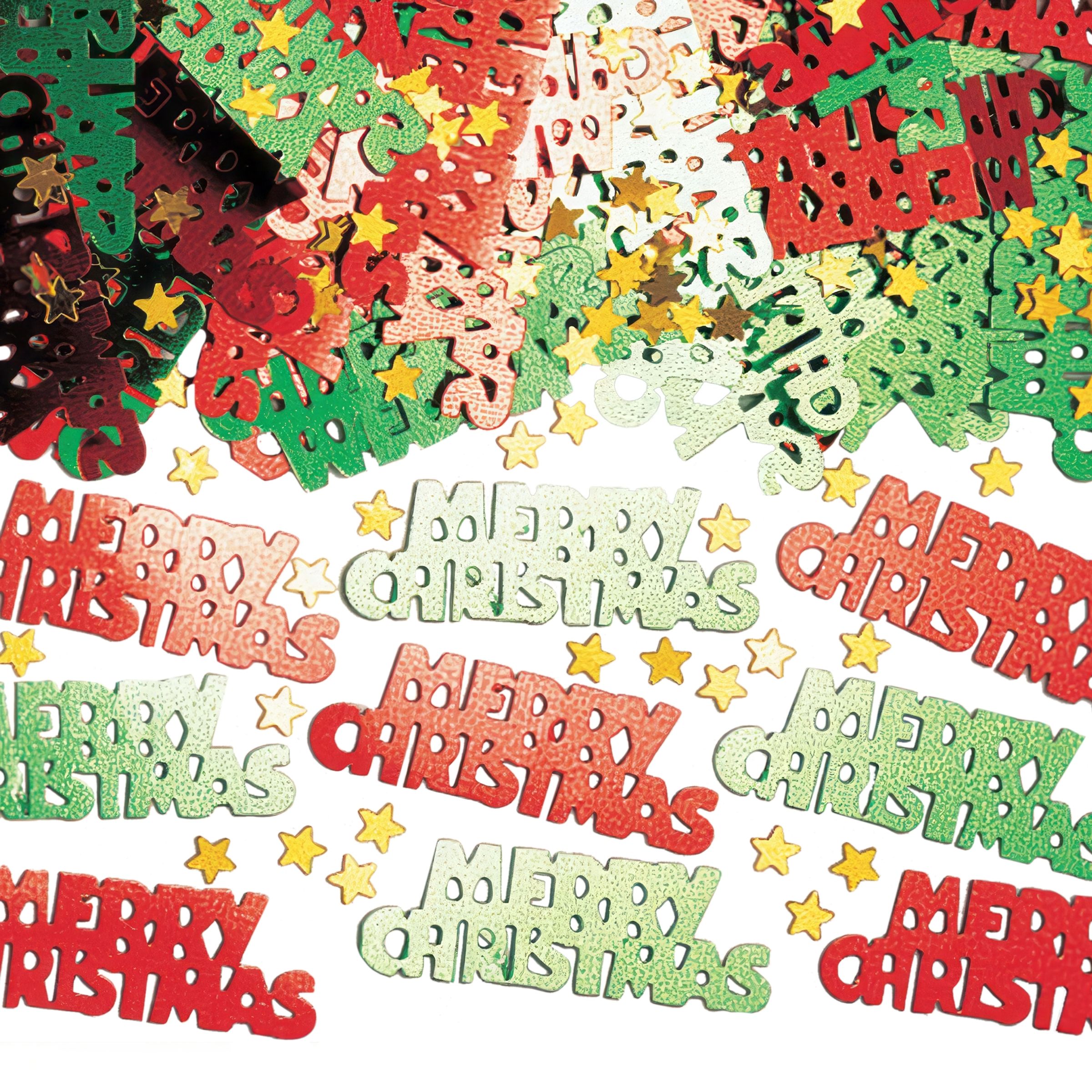 Bordskonfetti Merry Christmas innehåller ett gäng konfetti i färgerna rött och grönt med texten 'Merry Christmas' på. Perfekt till julfesten eller juldukningen!