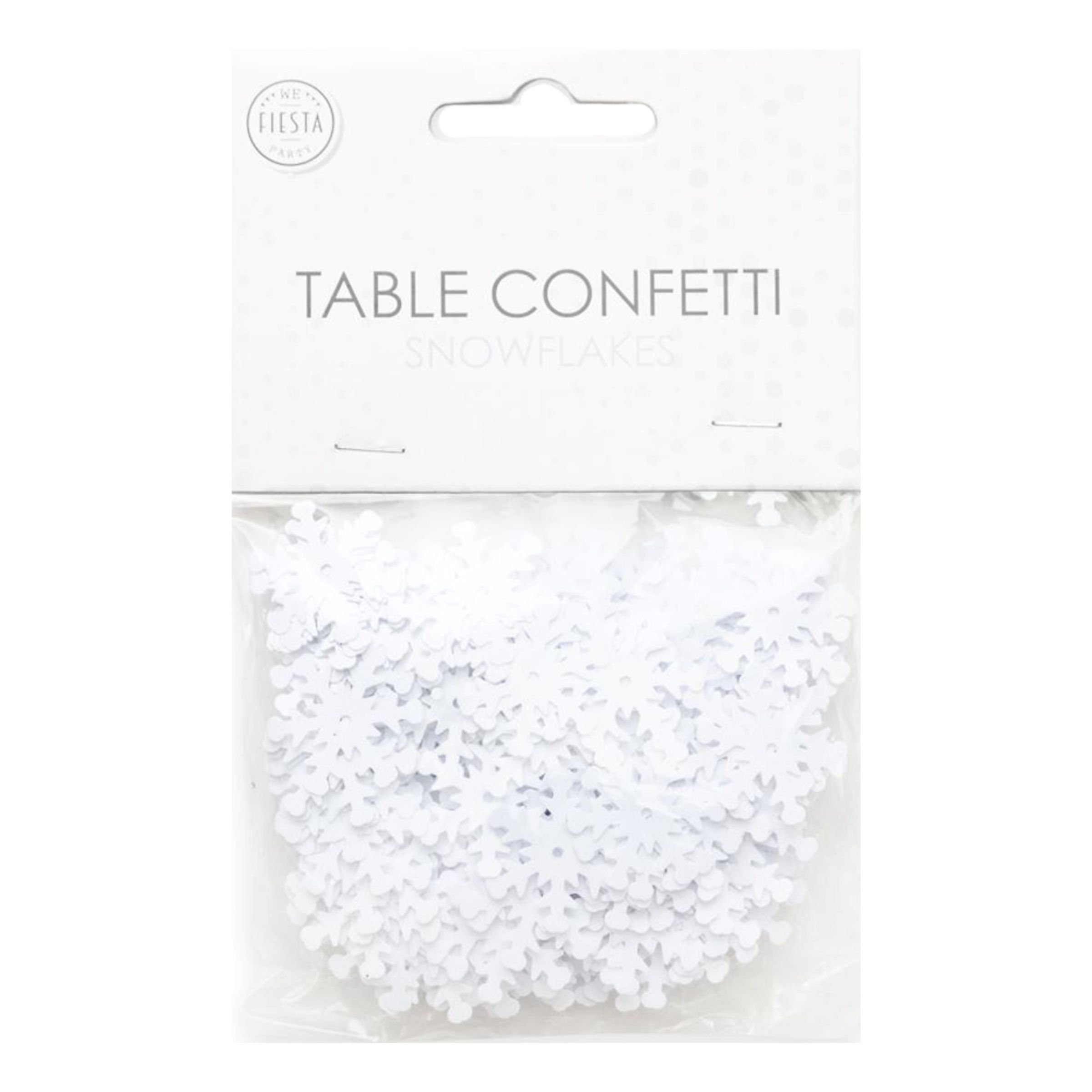 Bordskonfetti Snöflingor Vita är en superfin konfetti i form av små vita snöflingor, som du enkelt strör ut över bordet. Ett busenkelt sätt att piffa upp bordsdukningen.