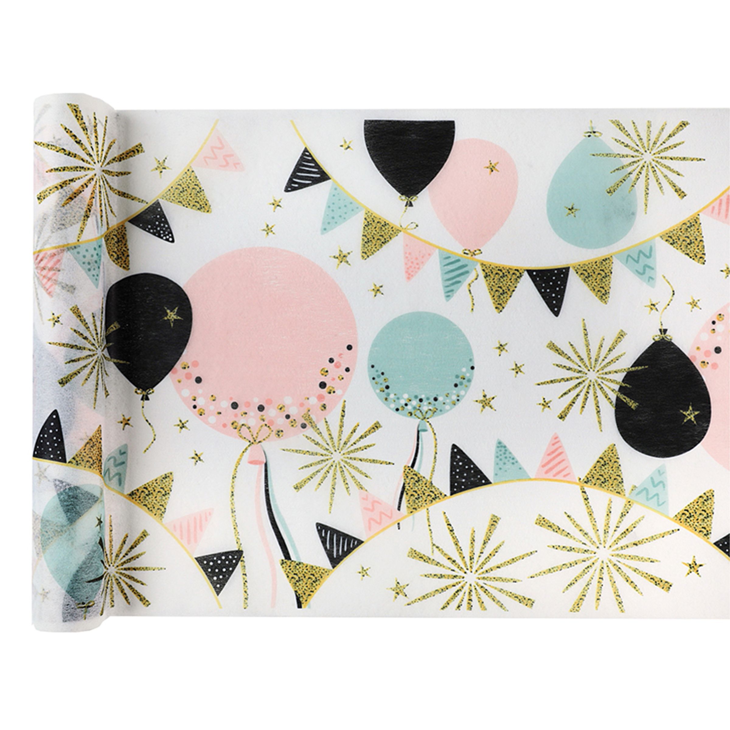 När det är kalas, ja då är det kalas! Då vill man inte ha så mycket annat är färgglada dekorationer i form av ballonger och girlanger, gräddtårta och presenter. Rulla ut denna bordslöpare med kalasmotiv och låt den göra resten av jobbet!