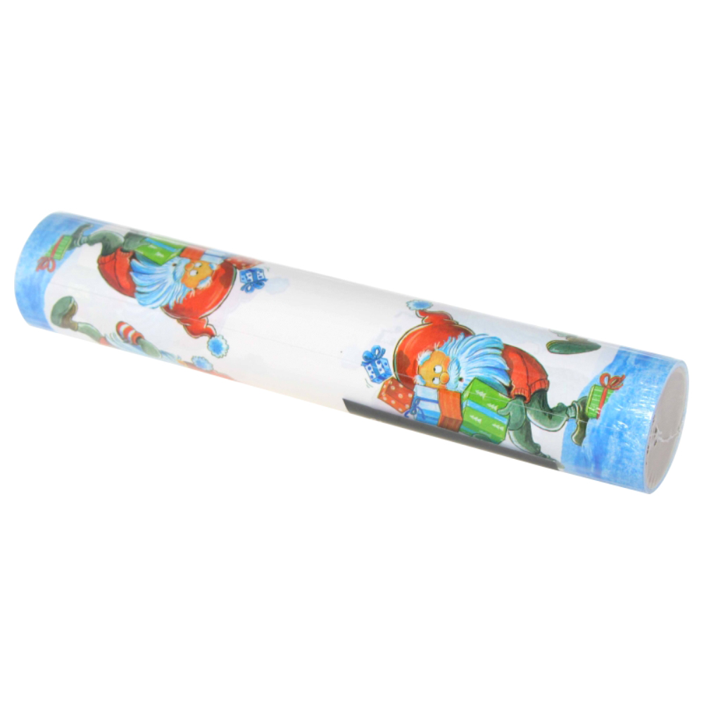 Bordslöpare Tomtar består av en smal pappersduk med motiv av glada tomtar. Bordslöparen mäter 25 centimeter bred och 3 meter lång.