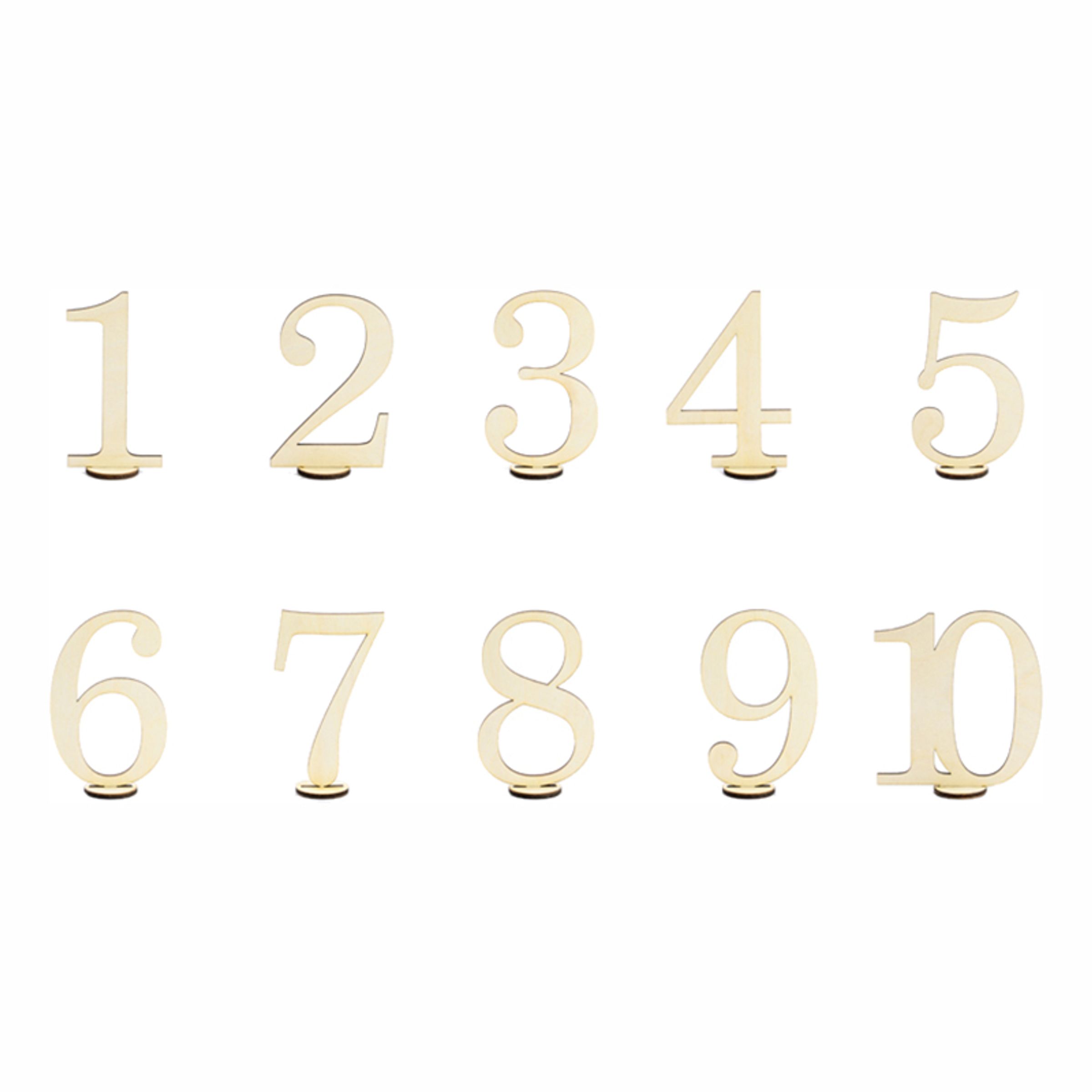 Bordsnumrering Träsiffror innehåller 10 stycken siffror i trä (siffrorna 1 till 10). Varje siffra mäter ca 10.5 cm och monteras enkelt ihop själv med medföljande botten. Siffrorna är träfärgade.