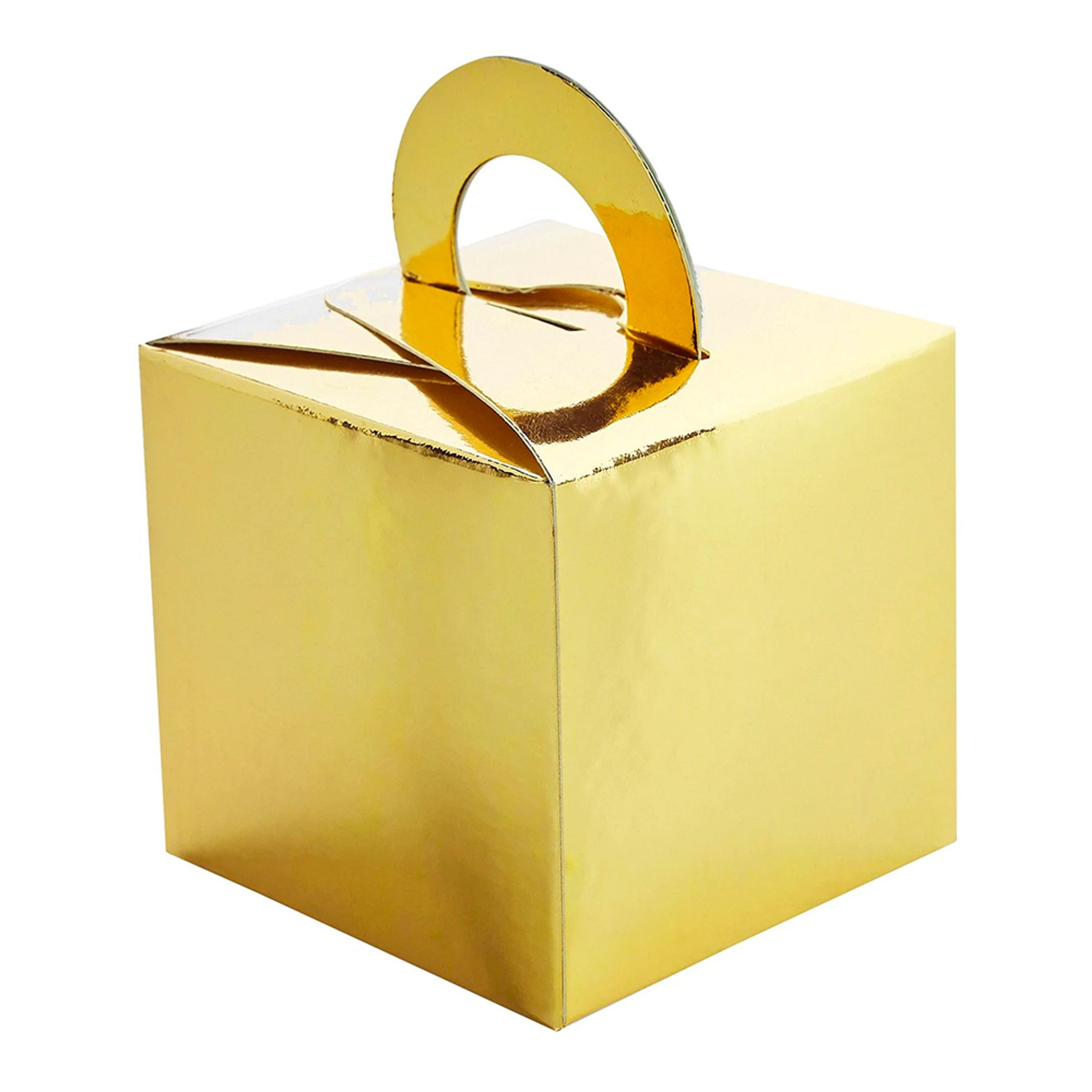 Boxar för Ballongvikter Guld är pappersboxar i måtten (B)67 x (H)64 x (D)66mm. Kartongerna viker du enkelt ihop och fyller med antingen en ballongvikt eller med något annat tungt.