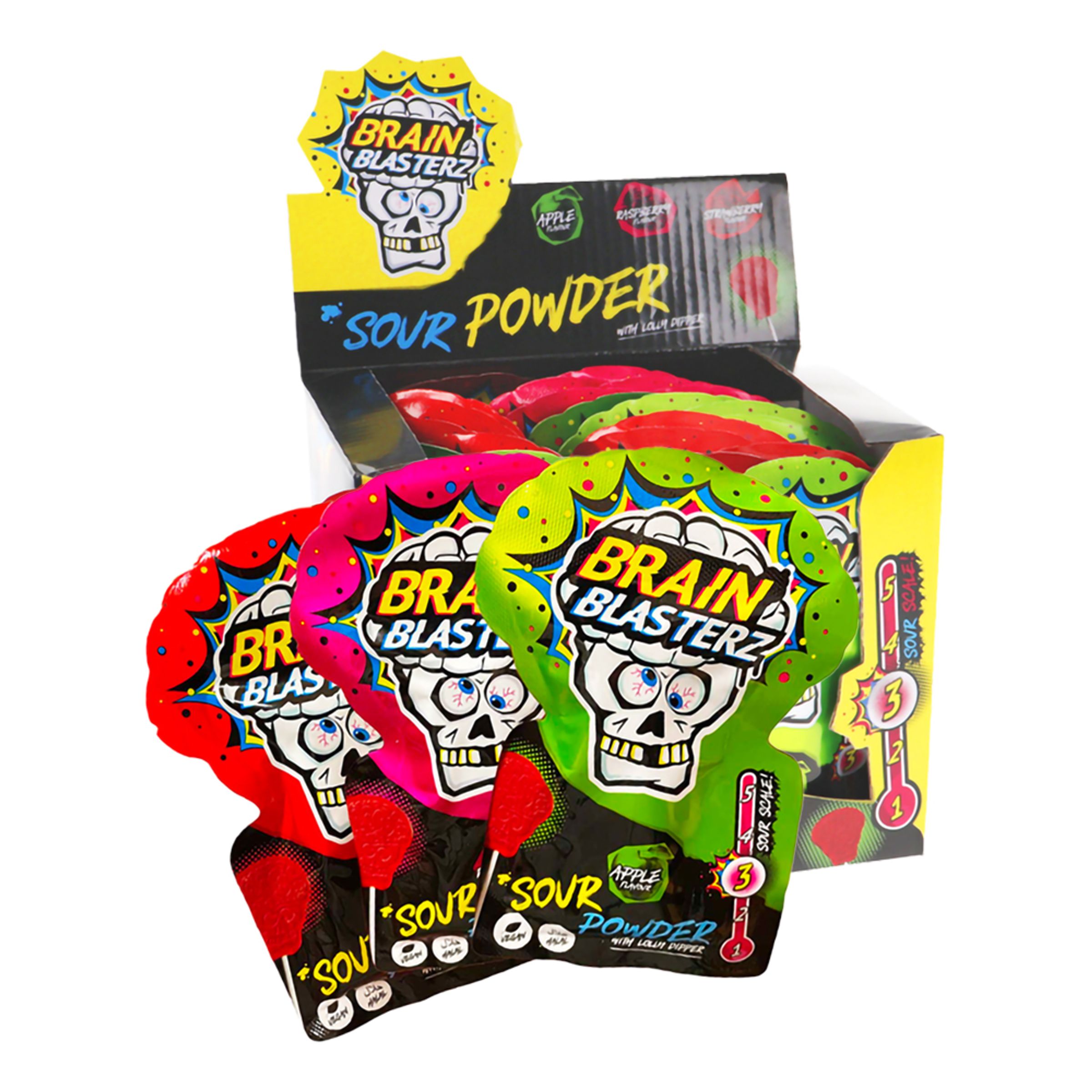 Brain Blasterz Lolly Dipper Storpack är supersurt bruspulver och en slickepinne att doppa. Vegansk och halal.