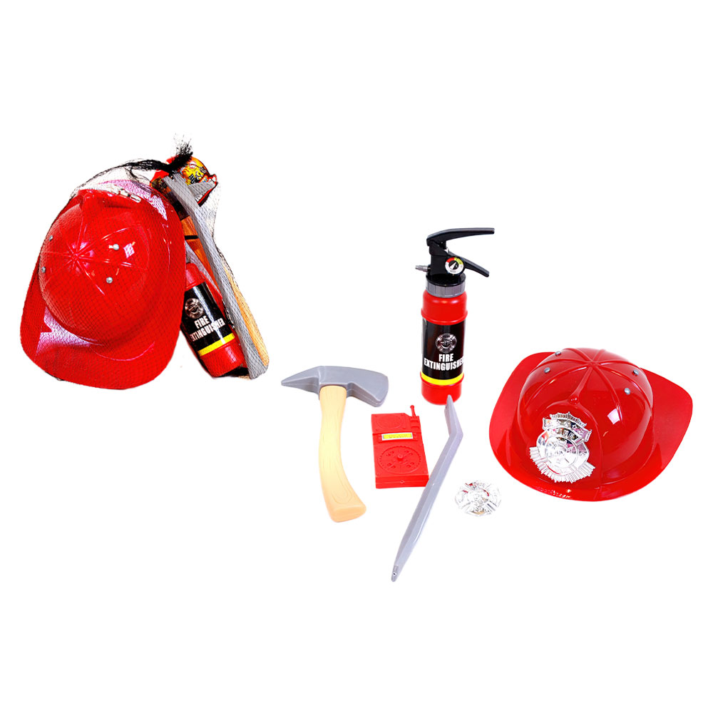 Brandmansleksaker omfattar ett set med 6 stycken brandmansleksaker. Setet består av en brandmanhjälm, en brandmansbricka, en brandsläckare, en walkie talkie och en kofot samt en yxa. Brandmanshjälmen kan spännas in för bättre passform.
