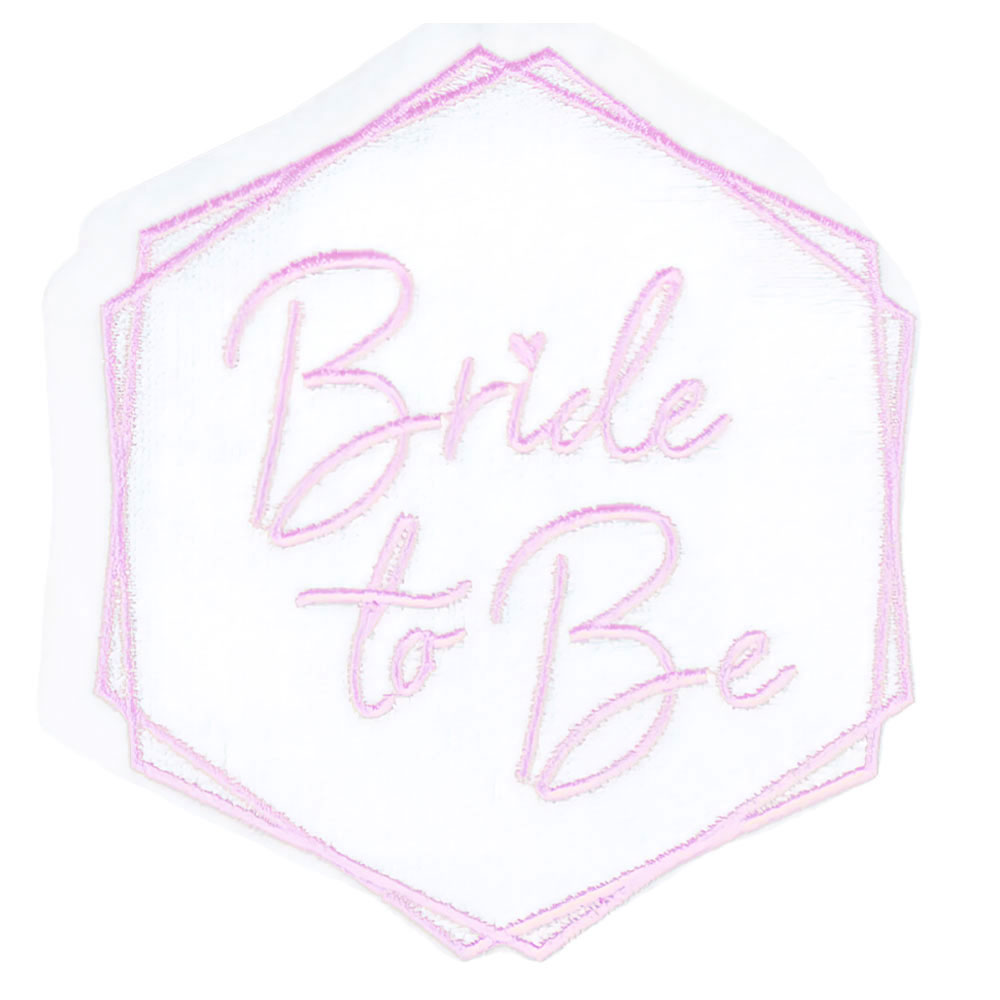 Bride To Be Tygmärke omfattar ett vitt tygmärke av polyester med texten "Bride To Be" i ljusrosa. Märket stryks enkelt på med strykjärn och passar till flera olika plagg och textilier. Tygmärket är ca 10 cm högt och 8,5 cm brett.