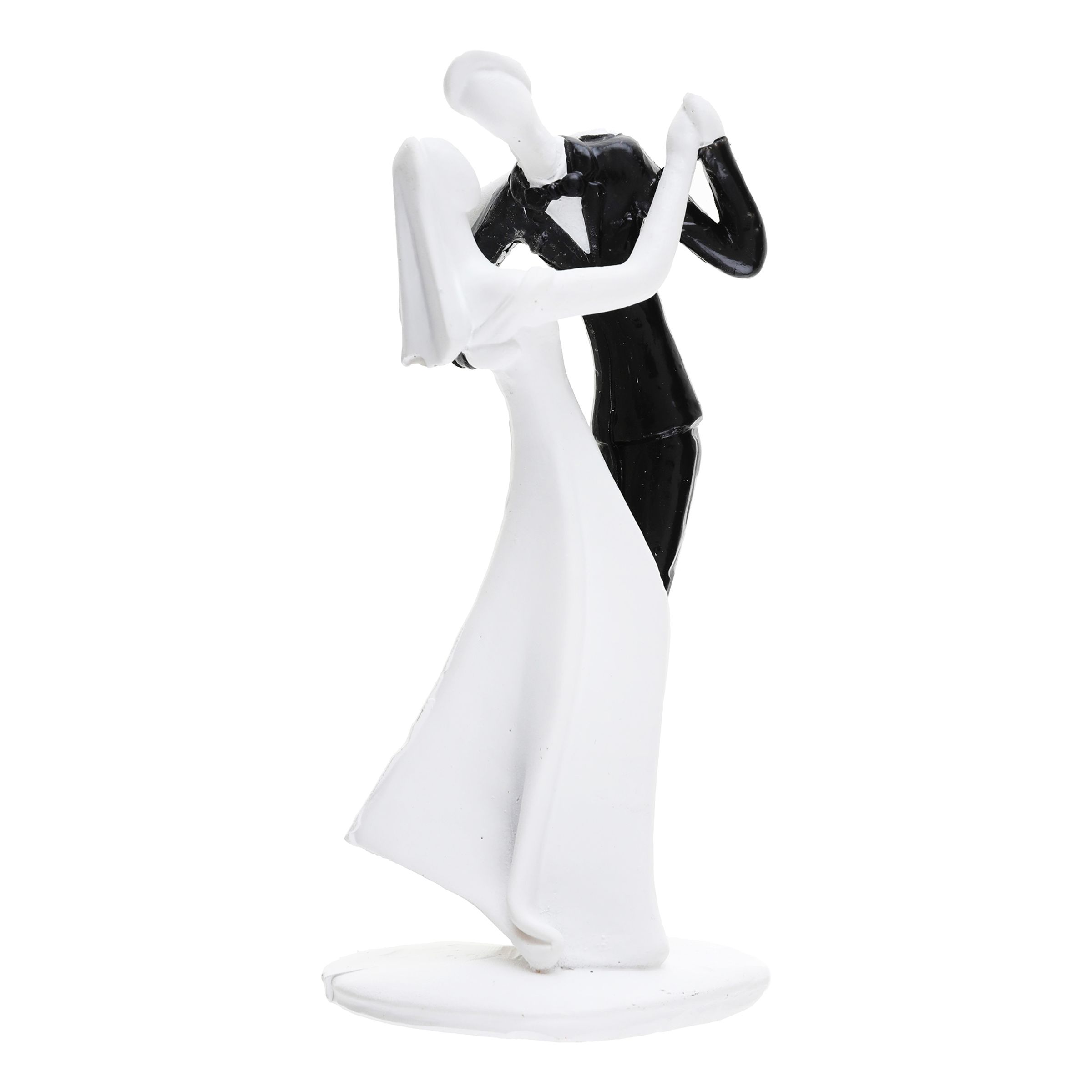 Bröllopsdekoration Dansande Brudpar innehåller en figur med motiv av en man i svart kostym och en kvinna i vit bröllopsklänning som dansar bröllopsvals. Perfekt att ställa ut på bordet på bröllopet eller varför inte på toppen av bröllopstårtan?